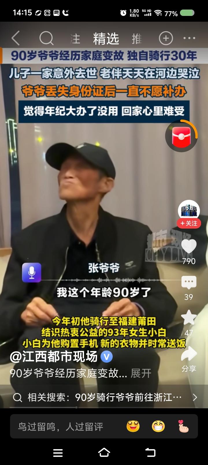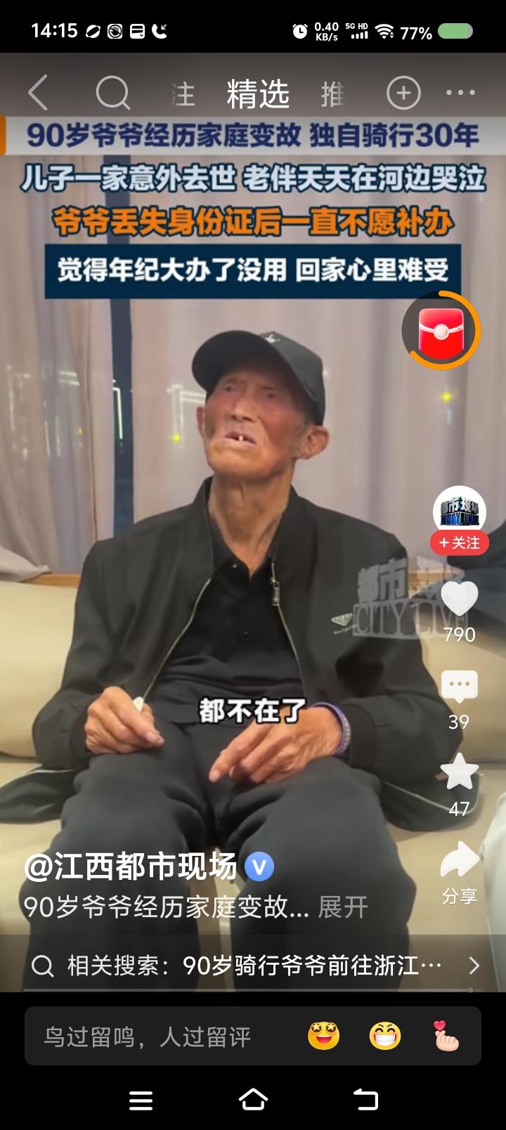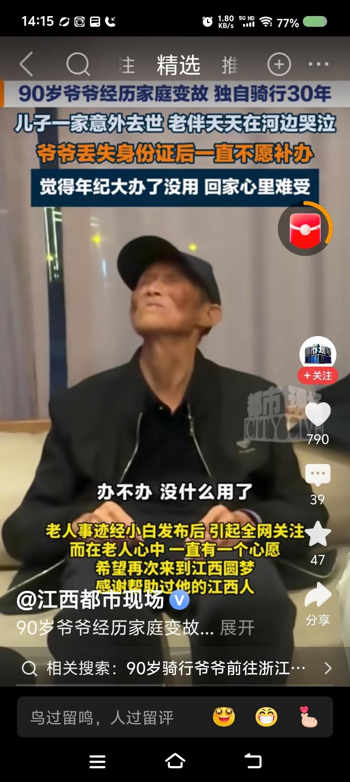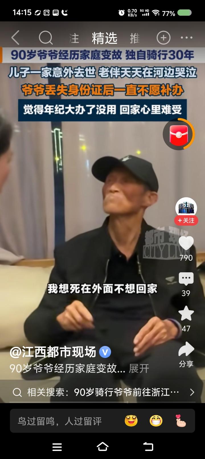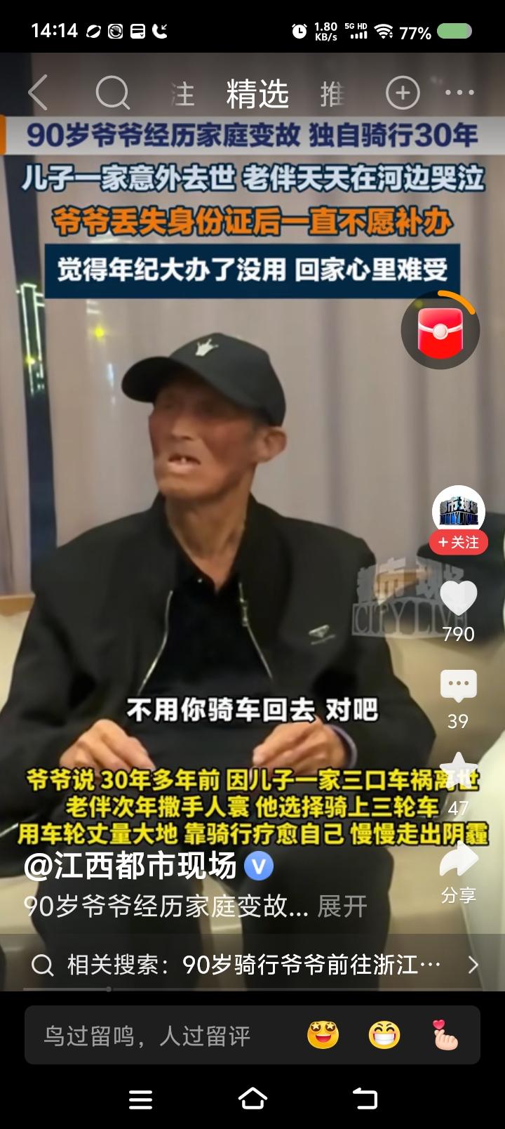这也是人生一课—— 据报道,一老人经历家庭变故,骑三轮车游历30年,不想回家,吃住在车上。没有身份证。有记者问:“为什么不办身份证呢?我送你回去,不用你骑车。” 老人说:“我90岁了,办不办证没用了,我想死在外边,不想回去,想念的人都去世了。” 点评: 刚看过一段视频:老师讲课,“再不赶回去,春天就没有了。‘江水流春去欲尽,’青春也是。若有人等你,就回到那个人身边吧。世界美好,生命美好,而美好是不长久的,而恰恰有了不长久它才美好。” 讲得好! 而那个老人讲得也好。 这就是世界。 痛苦,悲哀,死亡,不幸,分离,是不是也是世界美好的一部分?好与坏,交融,分离,产生了世界。