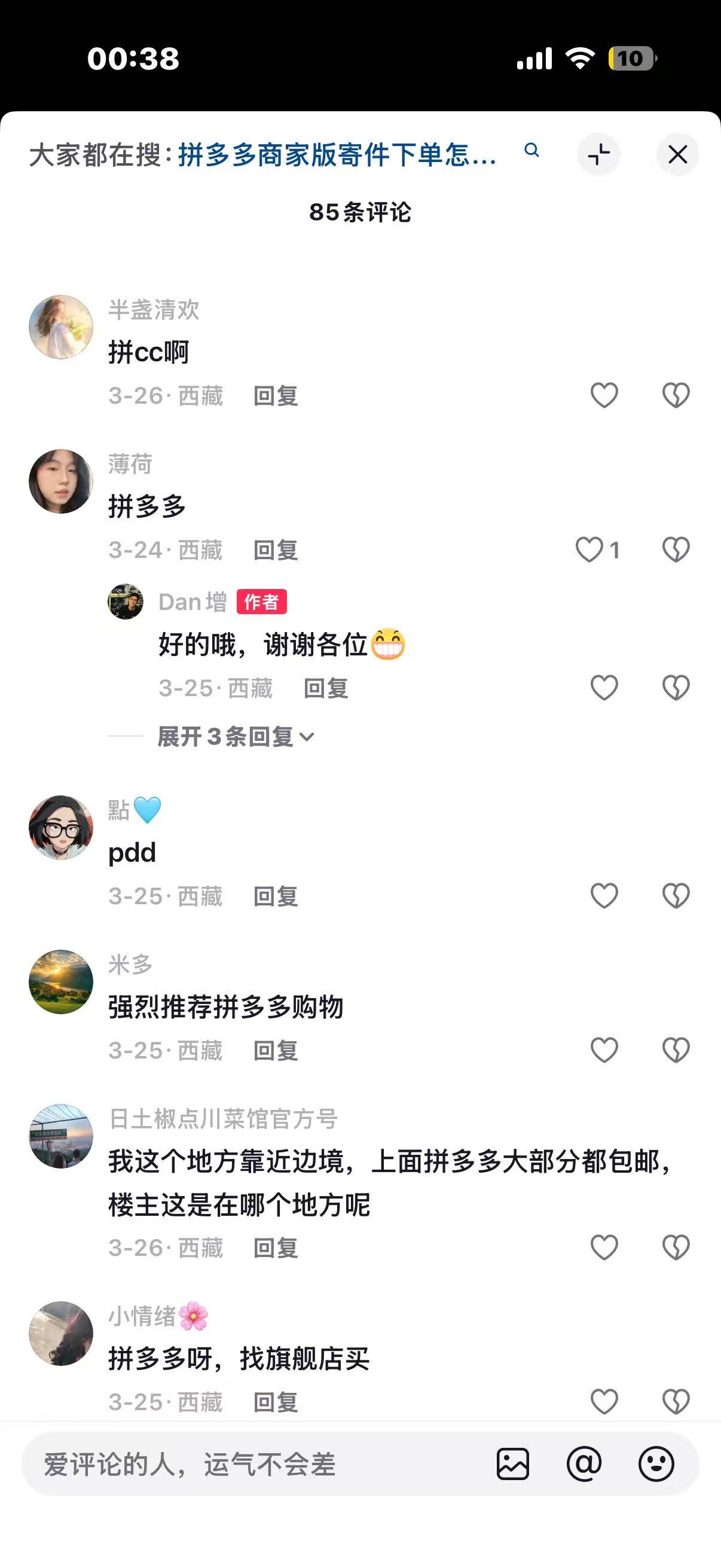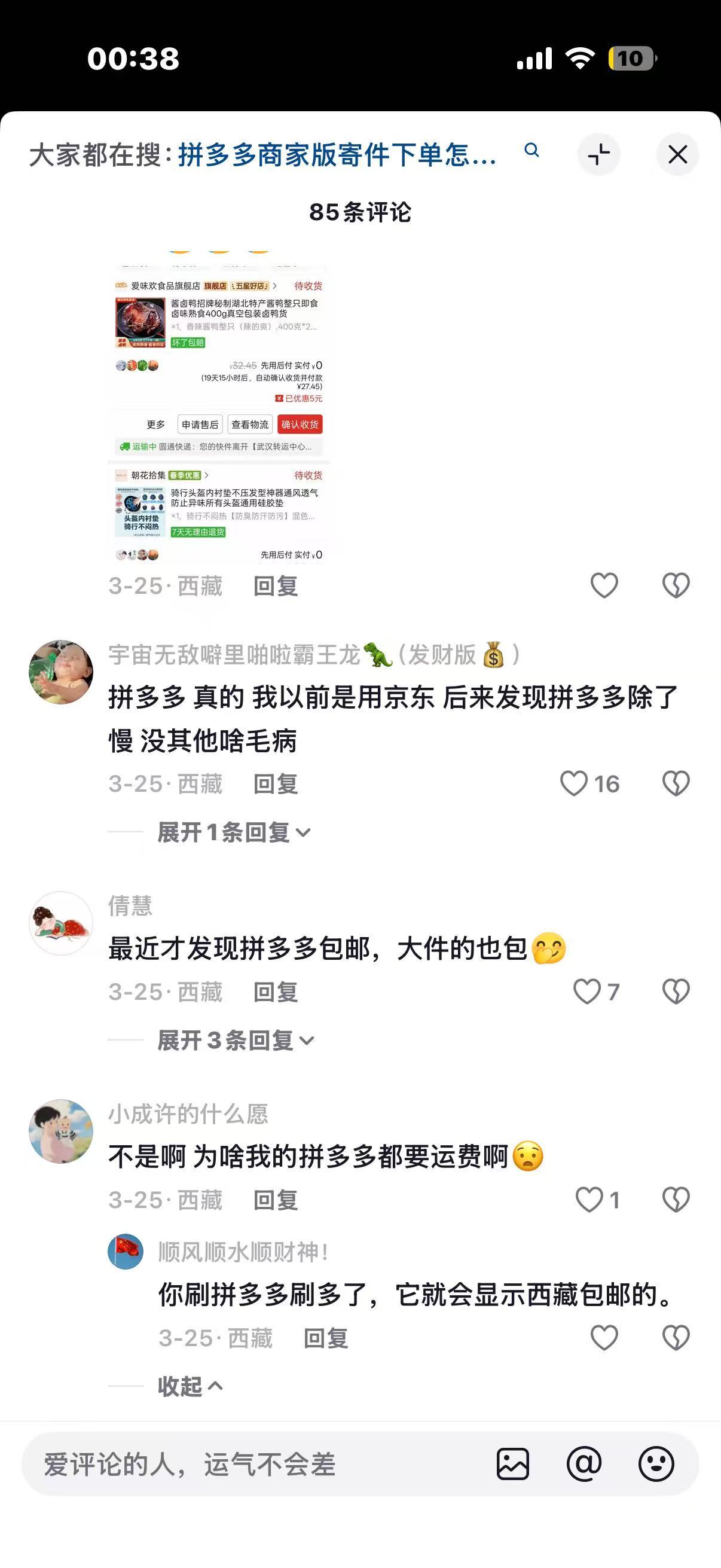 网友分享在西藏网购包邮方法,想去玩的宝子速收!藏区同事说pdd包邮之前,网购经常要几十的运费超可怕,现在pdd买各种生活用品都能包邮。我愿称pdd为包邮届最慈祥的母亲拼多多为何西藏买垃圾袋也能包邮拼多多电商西进