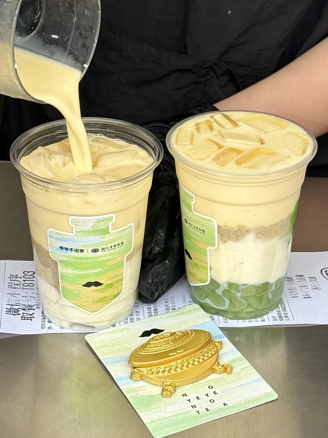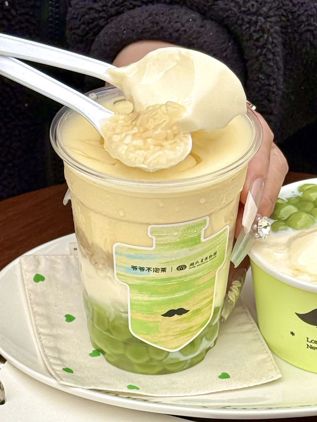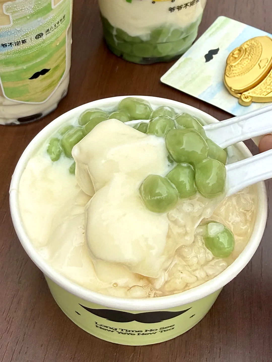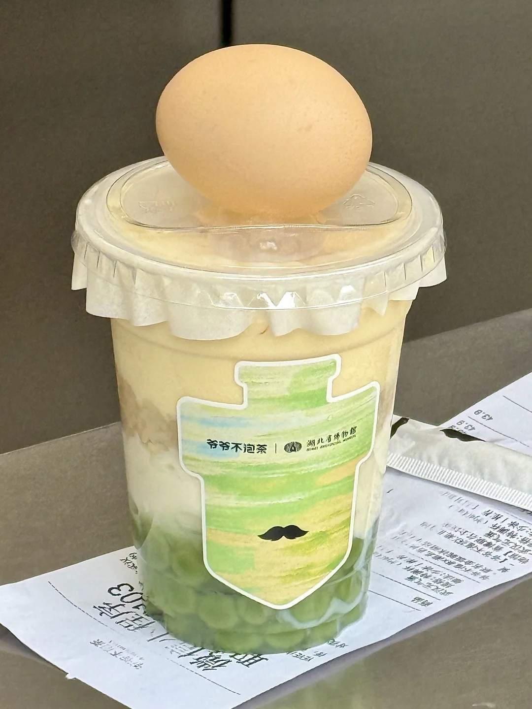 武汉元气蛋一杯居然喝到了三种口感….和浓郁版液体蛋挞没差了!!!底下还有双皮奶和米酿,再加点青团,滑糯弹!越品越有!!不用去湖北就能喝到荆楚味的过早奶茶了✌️