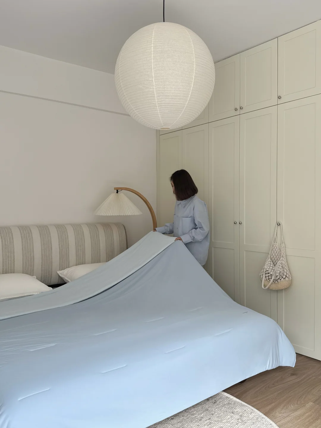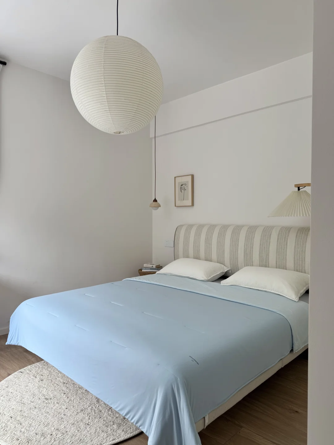 一床雾屿蓝,守住夏日清凉,享受着生活细碎的温柔。