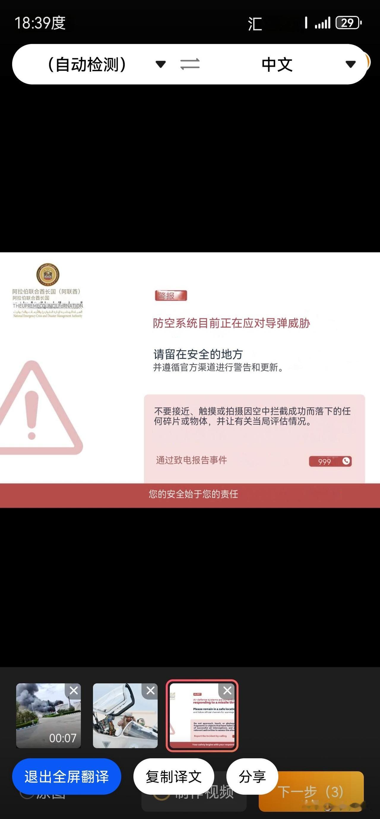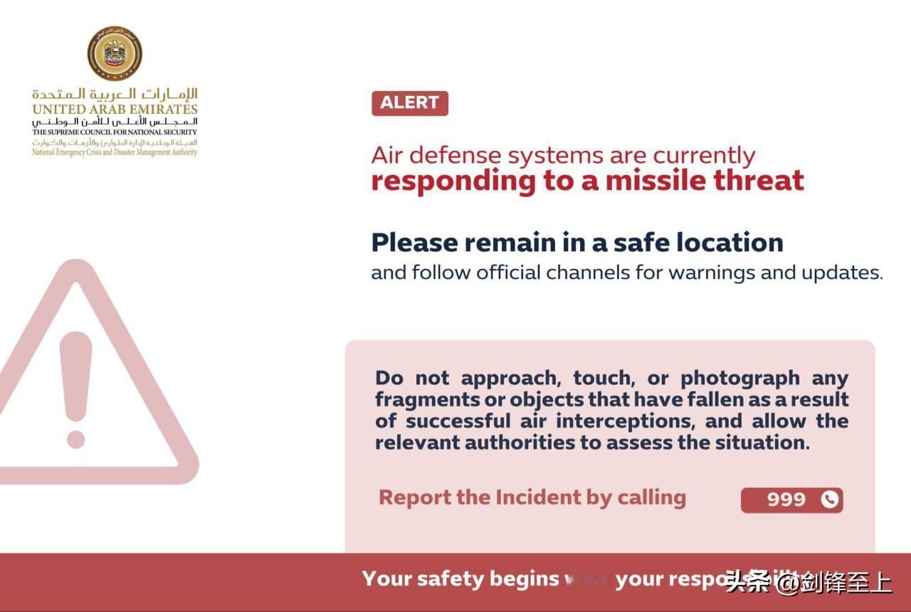 目前阿联酋已经发布了防空预警,预计伊朗很快会做出反应