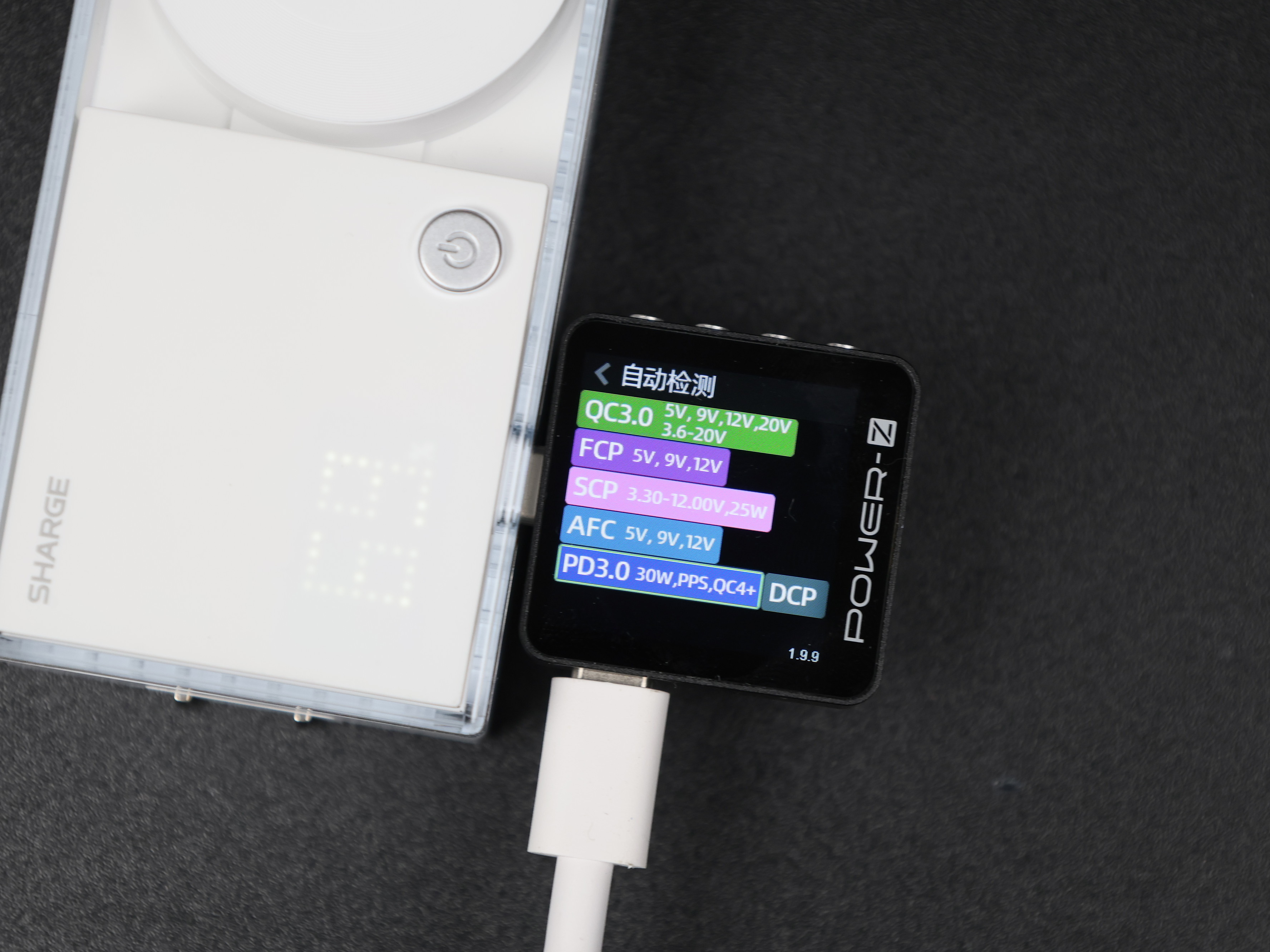 官网宣传30W 快充,实测没问题,而且充电协议非常全面,2个插头都支持QC3.0/FCP/SCP/AFC/PD3.0/DCP,简单来说大部分都能充不调设备。
