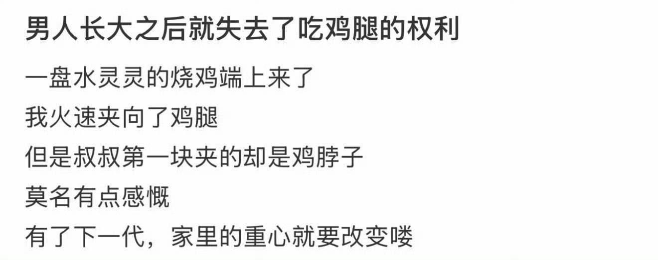 男人长大后就失去了吃鸡腿的权利