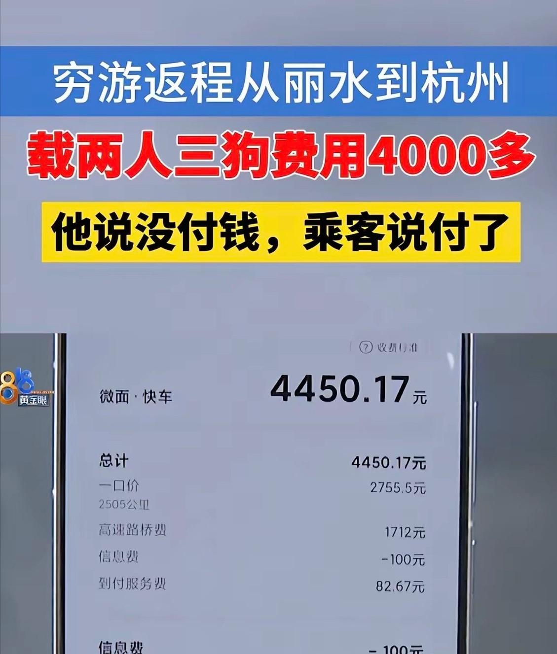 事情要从薛先生的穷游返程说起。他从浙江出发,自驾去西藏穷游,一路走走停停,返程到丽江时,身上的钱已经所剩无几,看着油箱见底,他想着顺路接个长途单,既能补贴油费,也能减轻返程的经济压力。随后,他通过出行平台,接到了两名女子的订单,对方带着三只狗,目的地是杭州,和他的返程路线刚好一致。