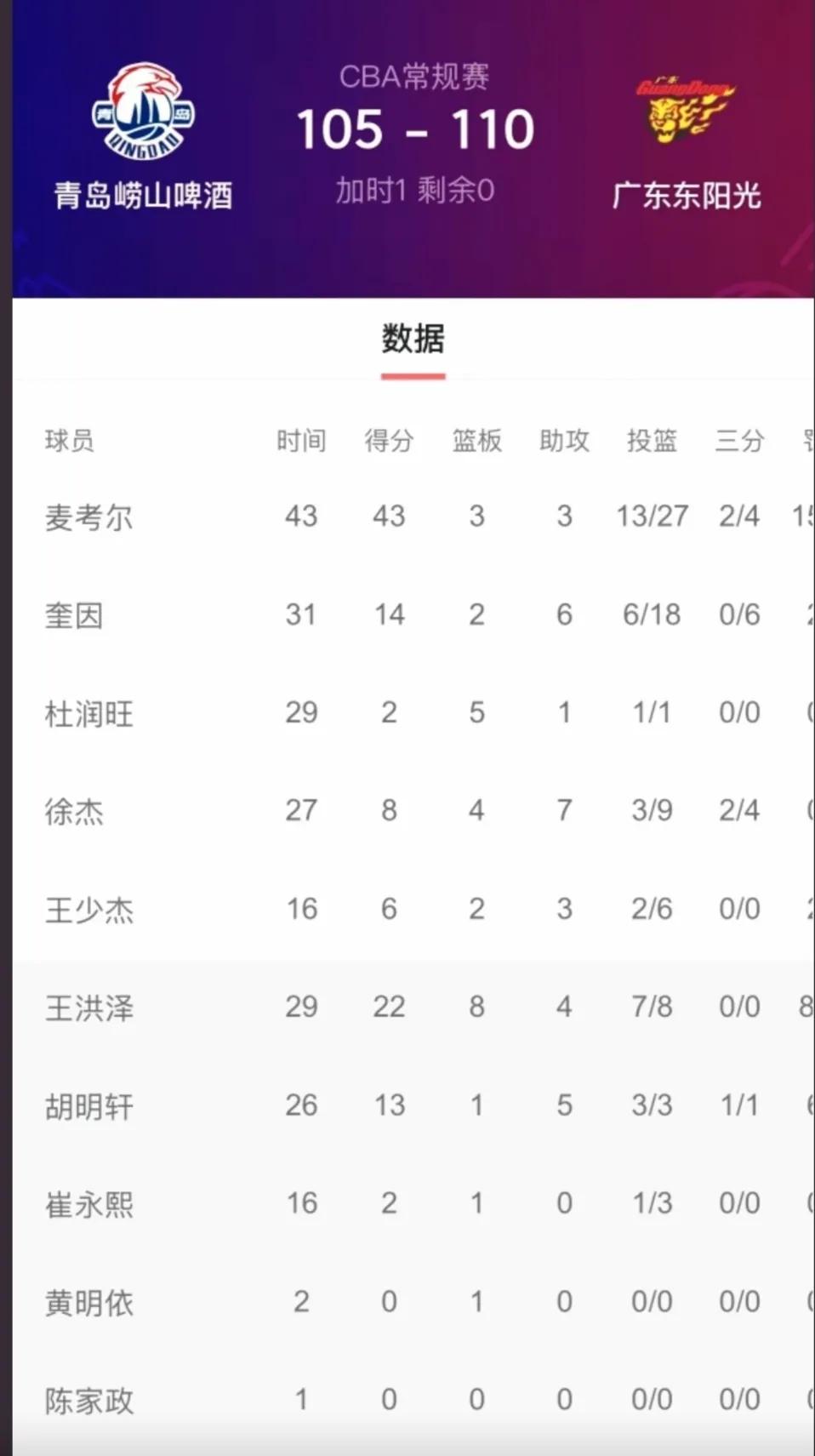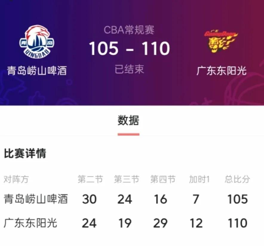 全员皆兵,斗志永远的一场激烈肉博战,最终广东队通过加时,客场艰难110-105战胜青岛。