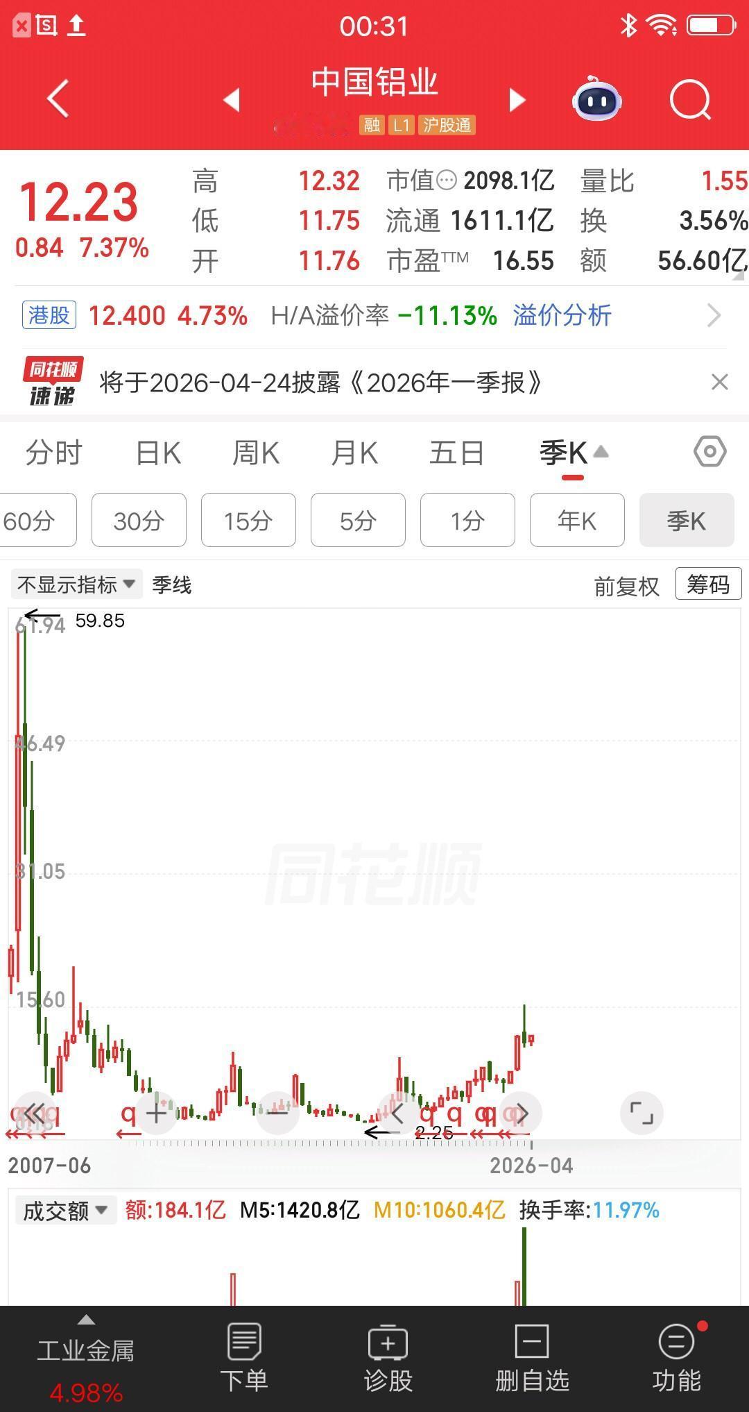 一位陕西的股民,套在中国铝业18年了,你们没有看错,就是被套18年了还没回本。他是在2008年3月份,以23元左右的价格买入50多万块。