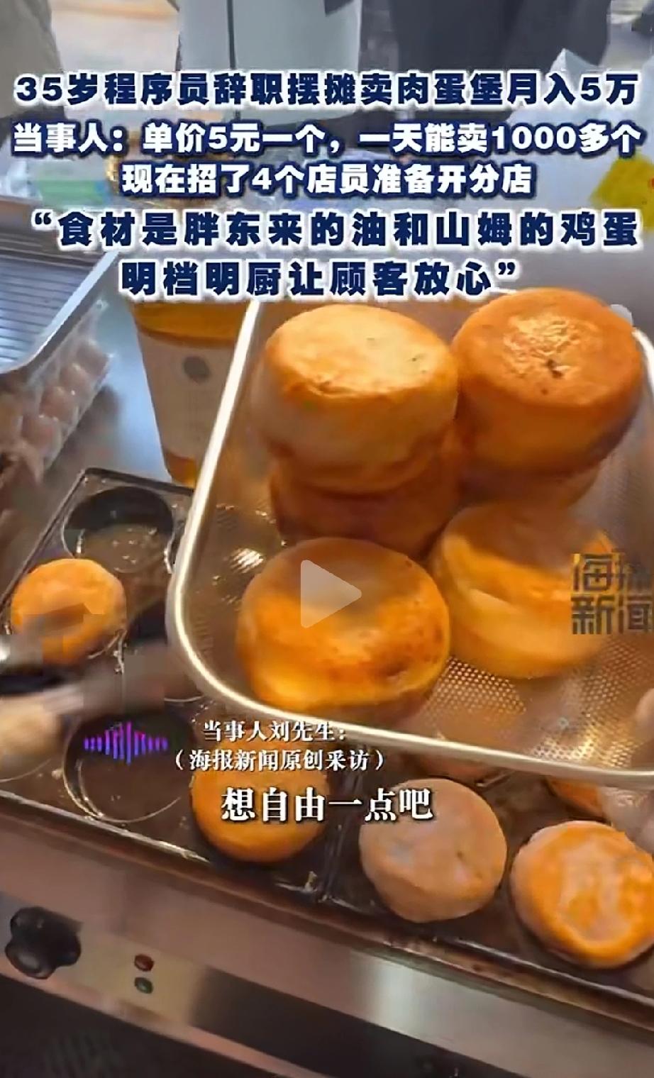 不敢信!北京,35岁的程序员刘先生,受不了工作的压力,干脆辞职不干了。没有再找同行业的活儿,反而跑去摆摊卖肉蛋堡,5块钱一个。结果一个月能赚5万多块钱,现在他已经招了4个员工,正准备开分店。