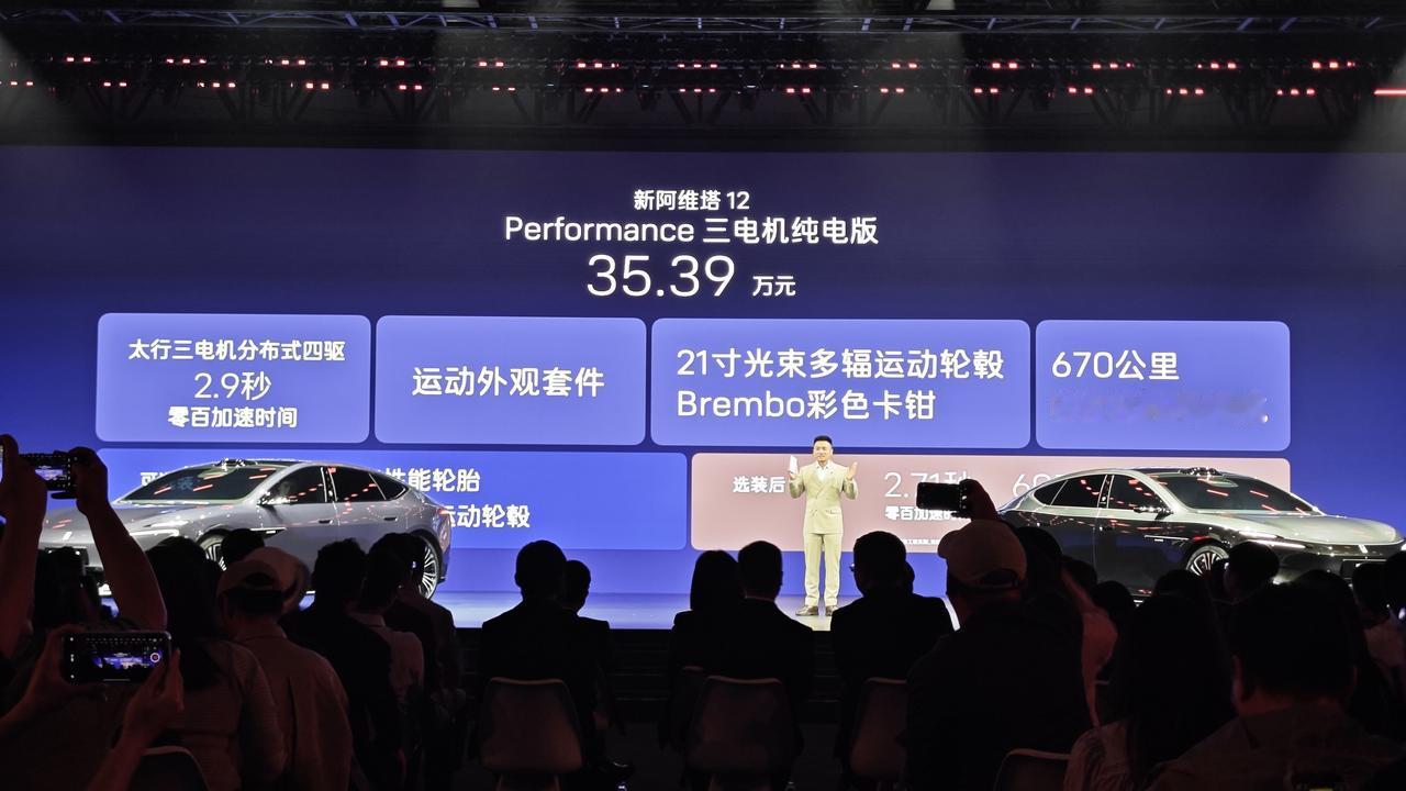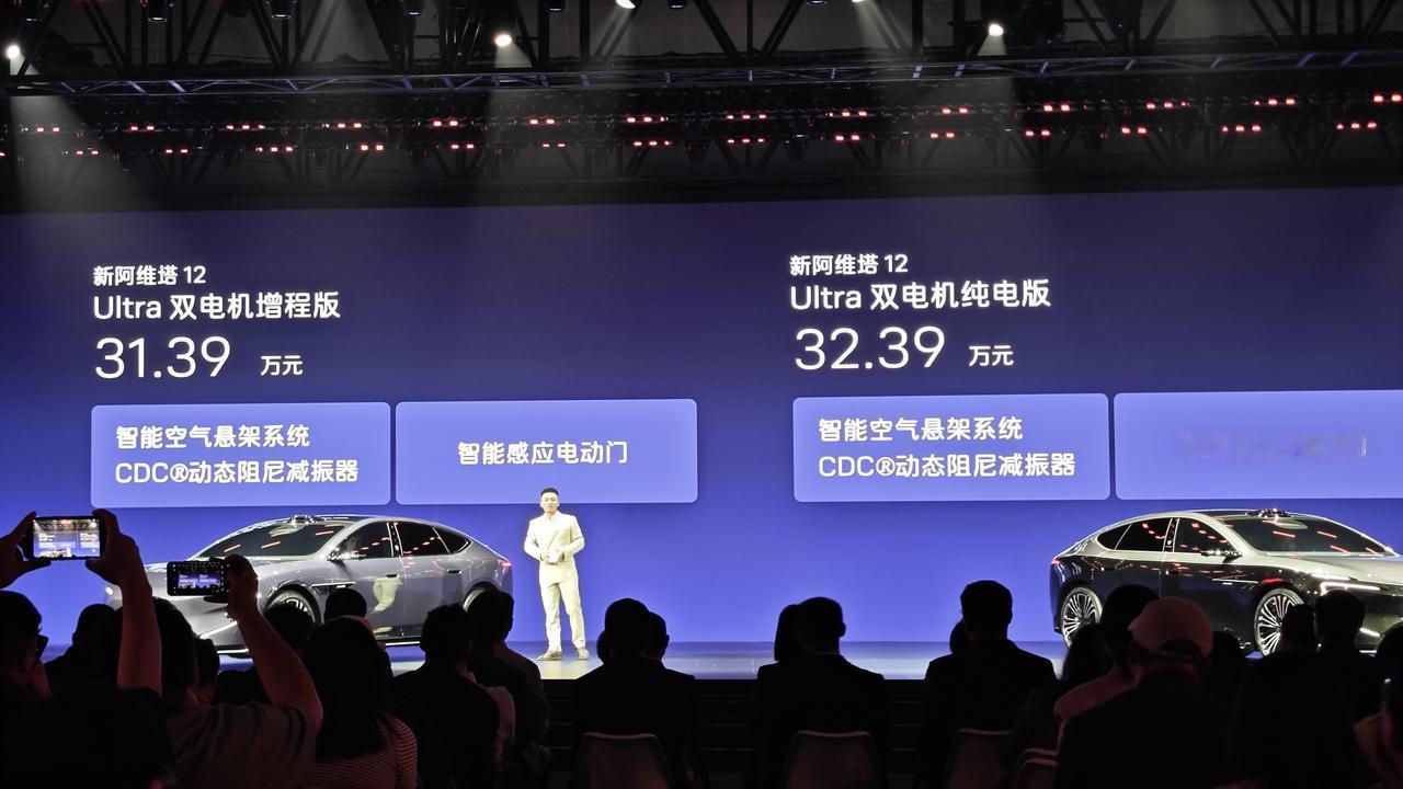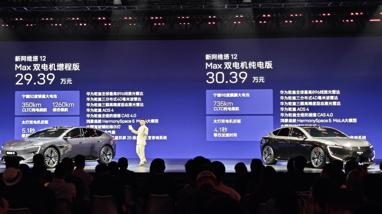 车盟快讯:今晚,全新阿维塔12正式上市,新车推出增程、纯电共7款车型,售价区间为 29.39 万-43.39 万元。新车全系标配华为896线四激光雷达与5颗4D毫米波雷达,搭载华为乾崑ADS 4.1,支持全域NOA及全场景智能泊车,全维防碰撞更安全。纯电版基于800V碳化硅平台打造,三电机版零百加速最快2.71秒,搭配太行智控 2.0操控拉满。车内配备鸿蒙座舱 5+MoLA大模型、35.4英寸4K星环屏及25扬声器英国之宝音响,豪华质感拉满。以顶格智驾+硬核性能强攻30万级豪华纯电市场,大家觉得全新阿维塔12性价比如何呢?