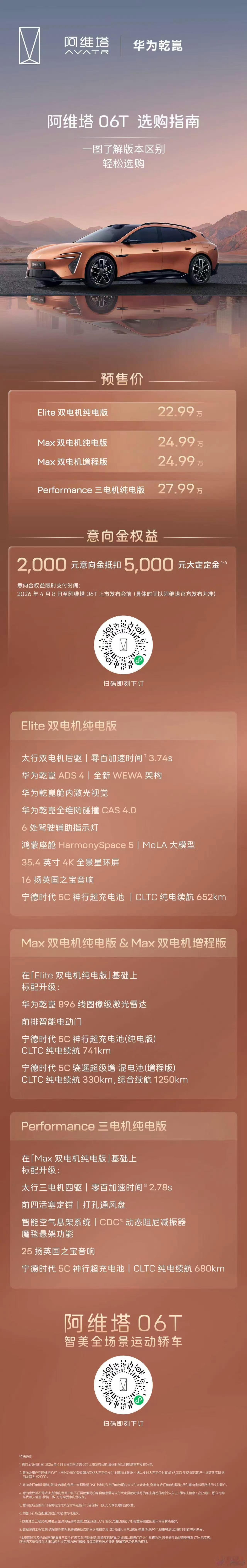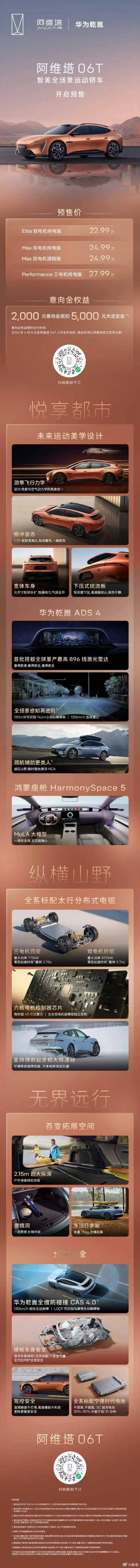 另外阿维塔06T也开启预售了,Elite版22.99万,整体价格比06稍贵,但有华为896激光雷达和太行分布式电驱,配置更高,感觉性价比还不错