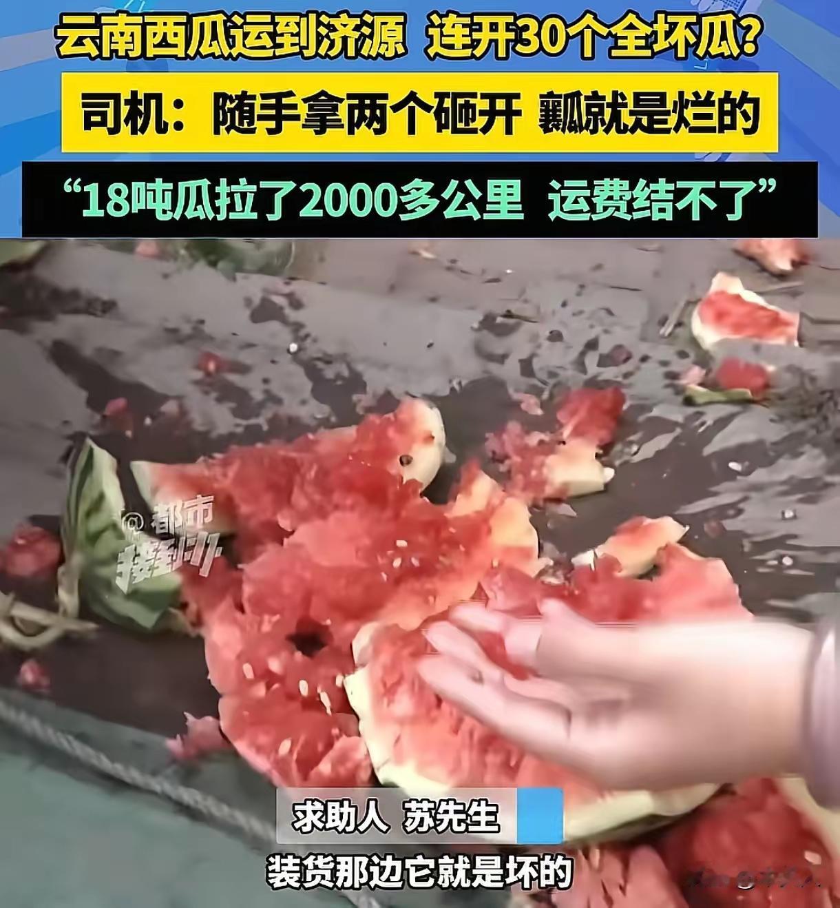 3月30日晚,苏先生接到货运订单,承诺将18吨西瓜从云南运至济源,运费待货物送达后结算。为了按时交货,他连夜装车,9点多便匆匆出发,一路马不停蹄,于4月2日中午顺利抵达目的地。然而,收货方的验货结果,却给了他当头一棒。