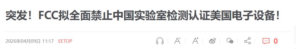 综上所述,美国FCC计划全面禁止中国实验室测试电子设备,表面上是国家安全考量,实质是对中国科技产业的战略打压。此举可能导致中美企业成本上升、供应链扰动、产品延迟,并引发全球产业链波动。