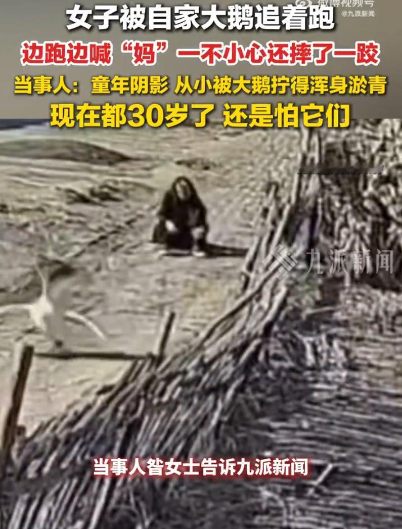 后来看了监控,昝女士自己都气笑了。她说这简直是童年阴影重现。小时候被大鹅拧得浑身青一块紫一块,现在都30岁了,还是怕它们