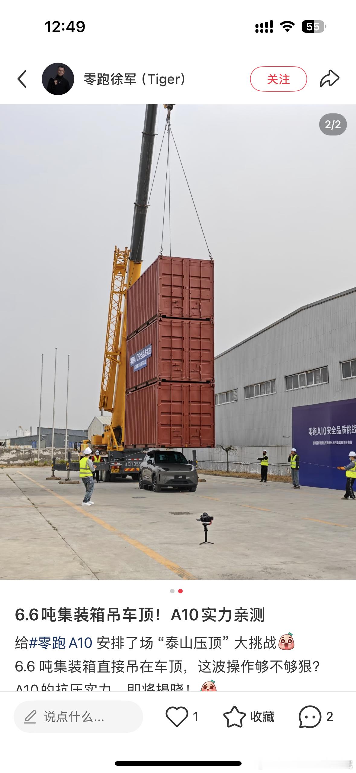在小红书上刷到了有关零跑A10的最新动态,6.6吨集装箱吊车顶A10实力亲测实验,那必须扛住呀~