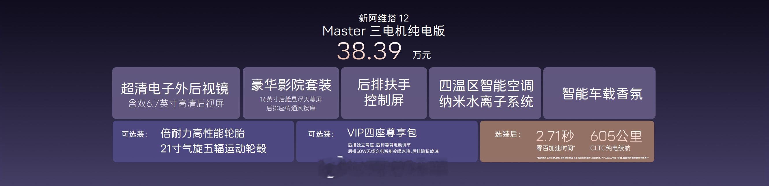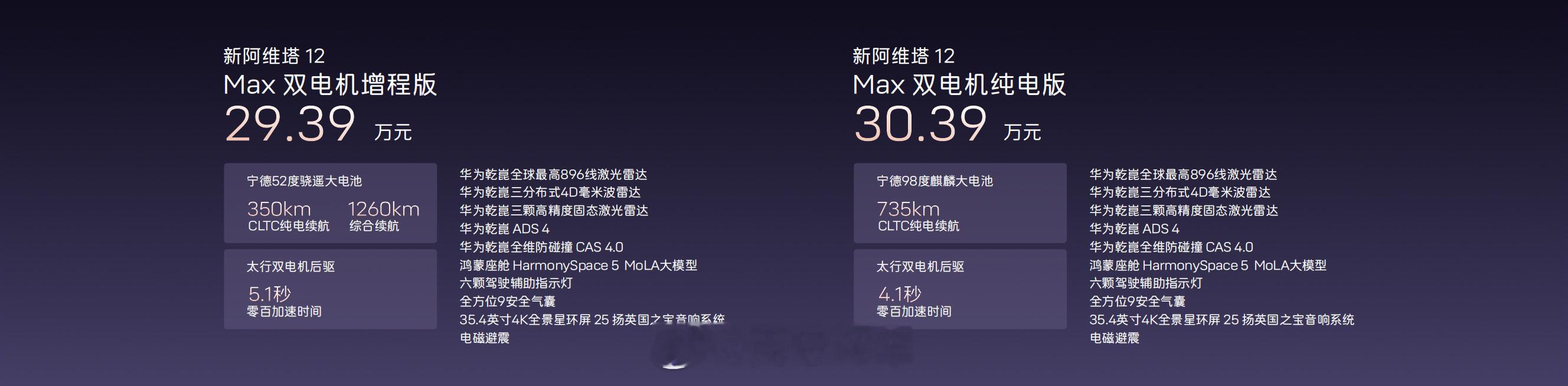 新阿维塔12正式上市,纯电/增程双动力、共7款车型,指导价29.39万元起。