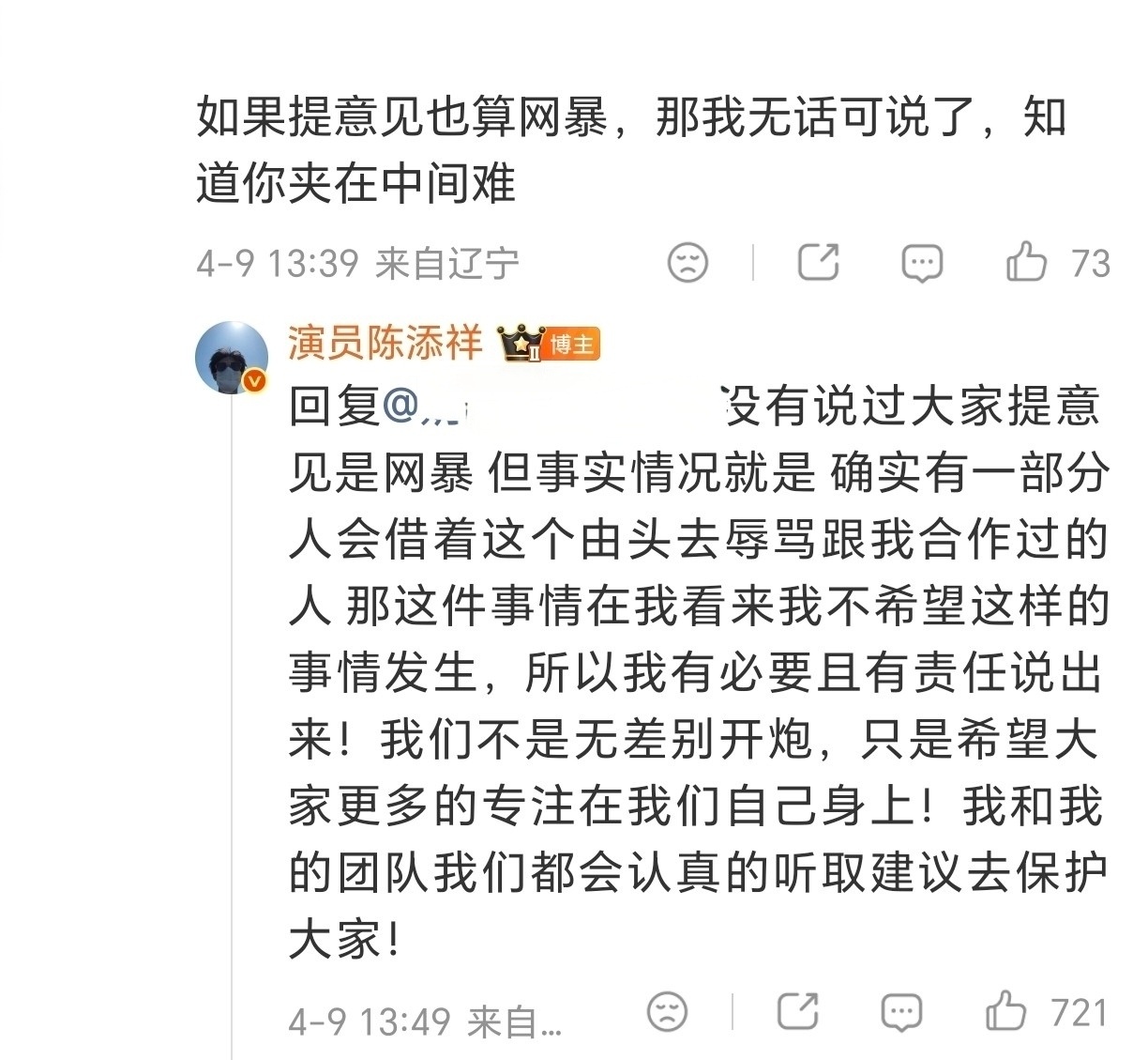 天呐,陈添祥,原来艺人是可以这样引导粉丝、对粉丝解释的,也是看得到工作室和粉丝之