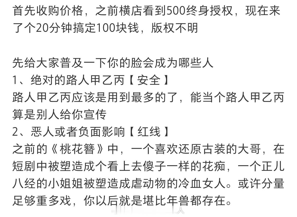 不敢相信我的眼睛 AI剧人脸授权100?终身授权500?真打发叫花子来了