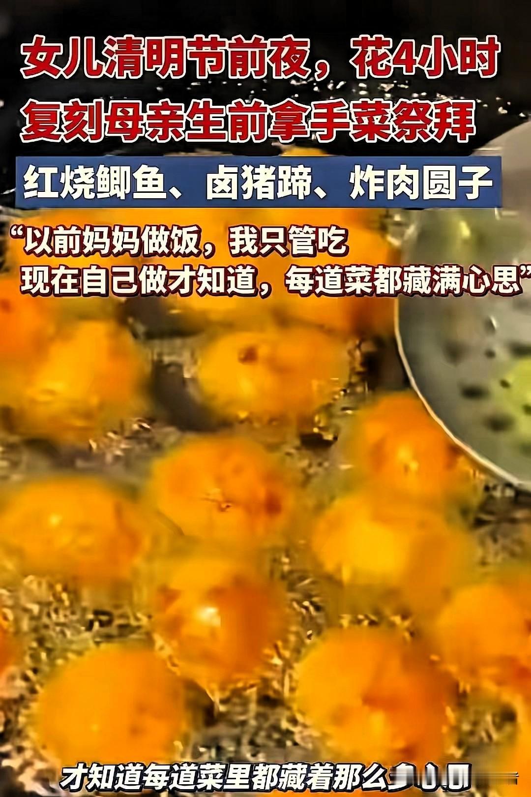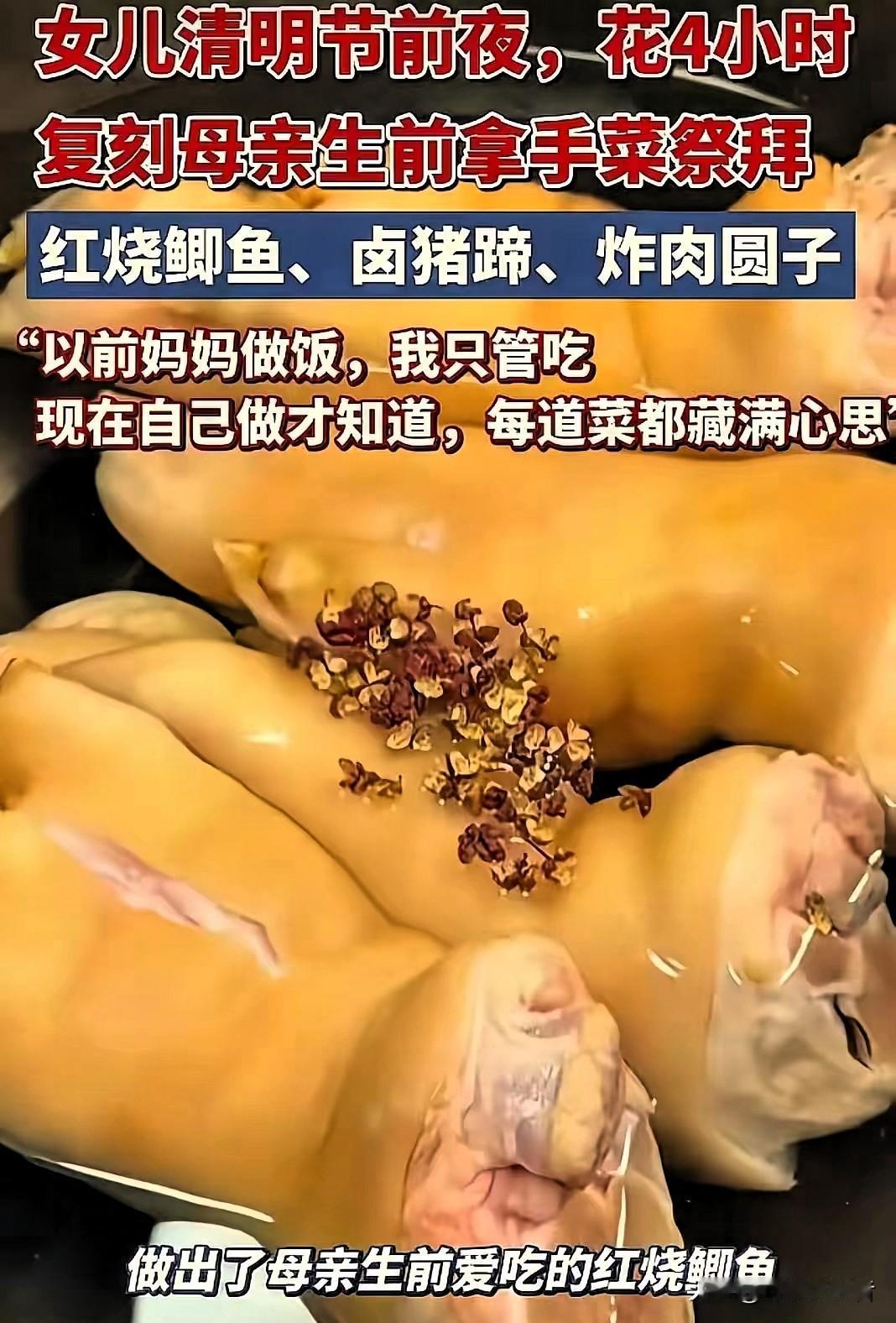“太揪心了!”湖北武汉,37岁女子清明祭拜去世母亲,她没送鲜花,也没拿多余祭祀用品,只带了卤猪蹄、红烧鲫鱼、炸肉圆子3道菜,红着眼眶摆在墓碑前,本以为这是女子的拿手菜,结果她一句话让人破防了。