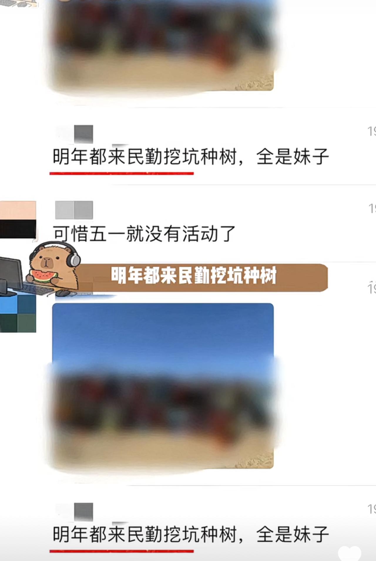 女志愿者都去种树防沙了,有的男的还在那选妃。