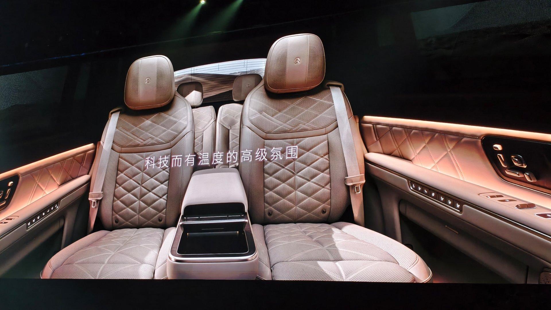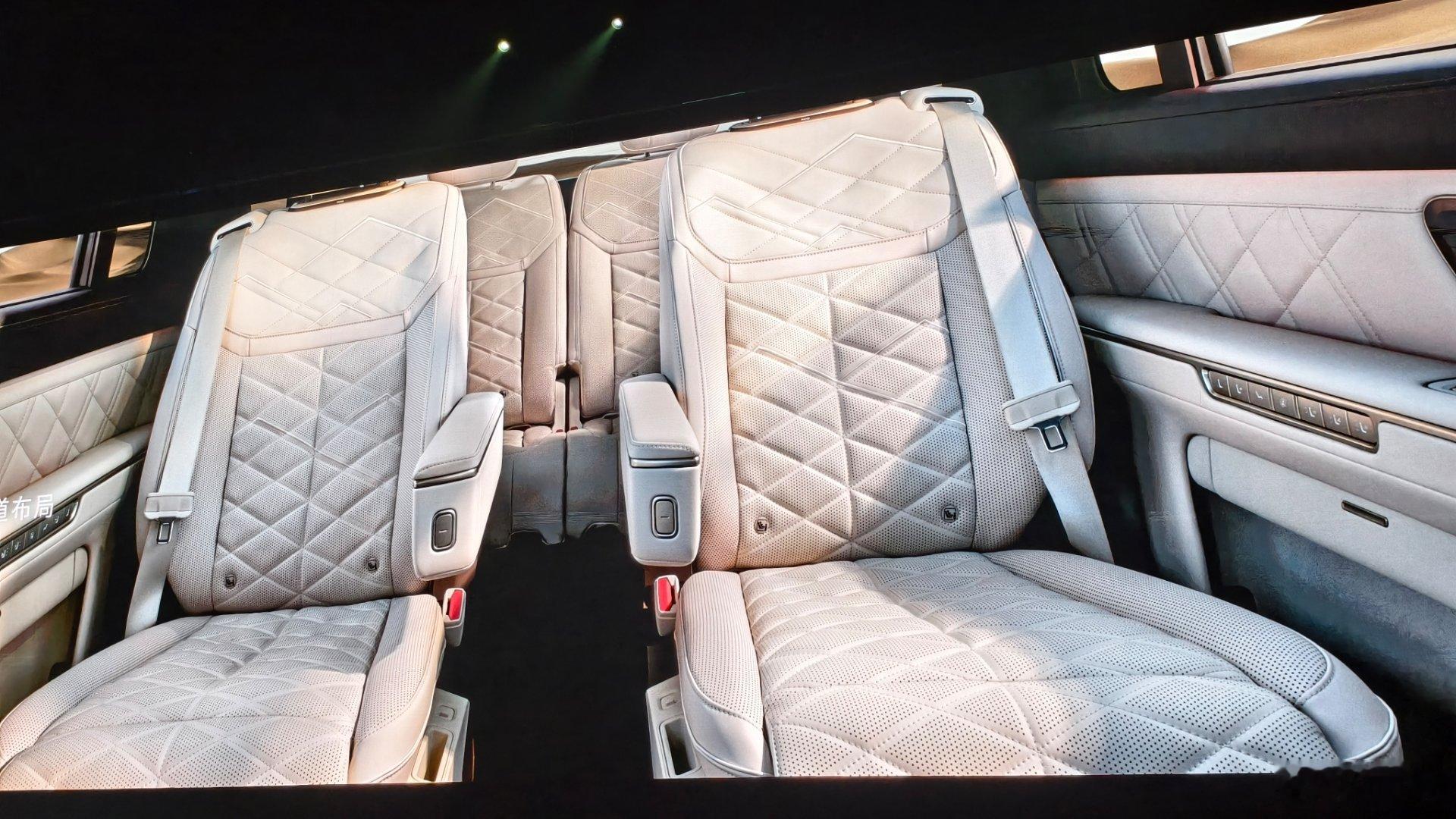 蔚来ES9车厢很有质感多层次的氛围灯,很好烘托座舱的细节这次蔚来在ES9做了很多中式寓意的设计包括座椅的雕花,木纹,天窗的布局每一次都讲寓意,这手法很中式六座的布局有两种方式带中岛的第二排,座舱功能和气派更好不带中岛,进出第三排更方便我们觉得,其实带中岛直接做大四座这样进出第二排更有气派蔚来es9