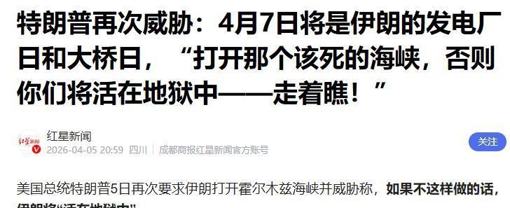 4月7日那天,白宫那位在社交平台上发出了开战以来最极端的威胁:如果晚8点前收不到回应,美军将把伊朗的发电厂和桥梁全部送入坟墓。
