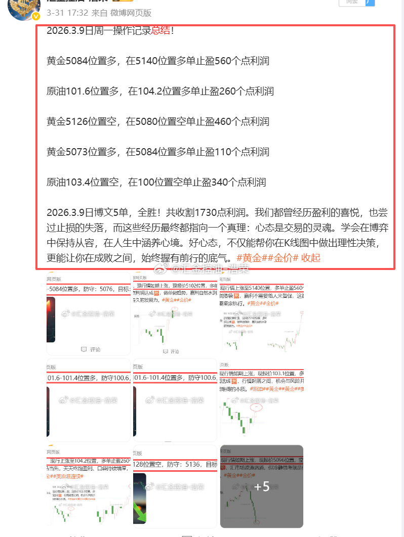 2026.3.9日周一操作5单,全胜,共斩获1730点利润网页链接