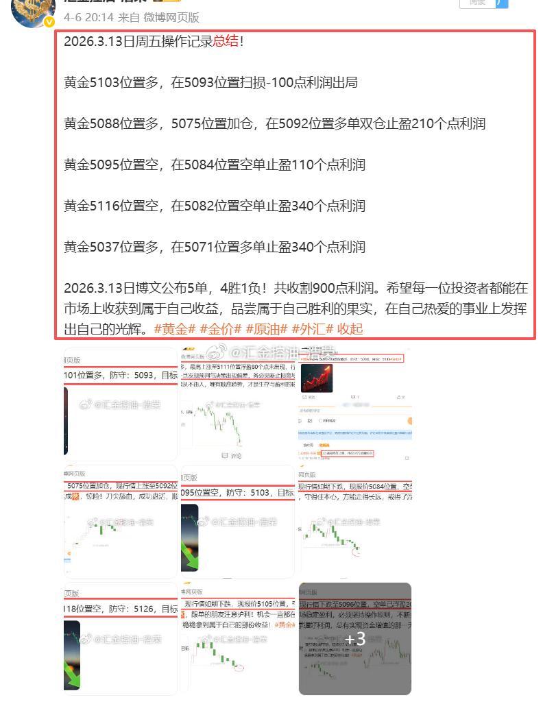 2026.3.13日周五操作5单,4胜1负,共收割900点利润网页链接