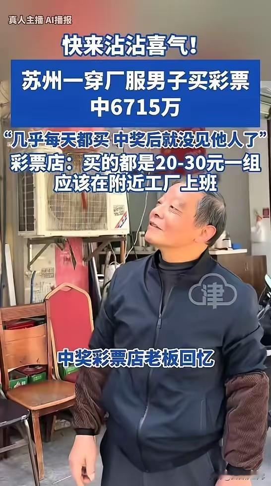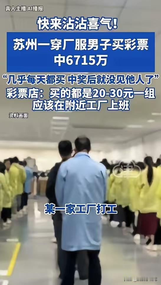这就是命啊!苏州厂服哥20元中6715万,兑奖后彻底消失,网友:人间清醒