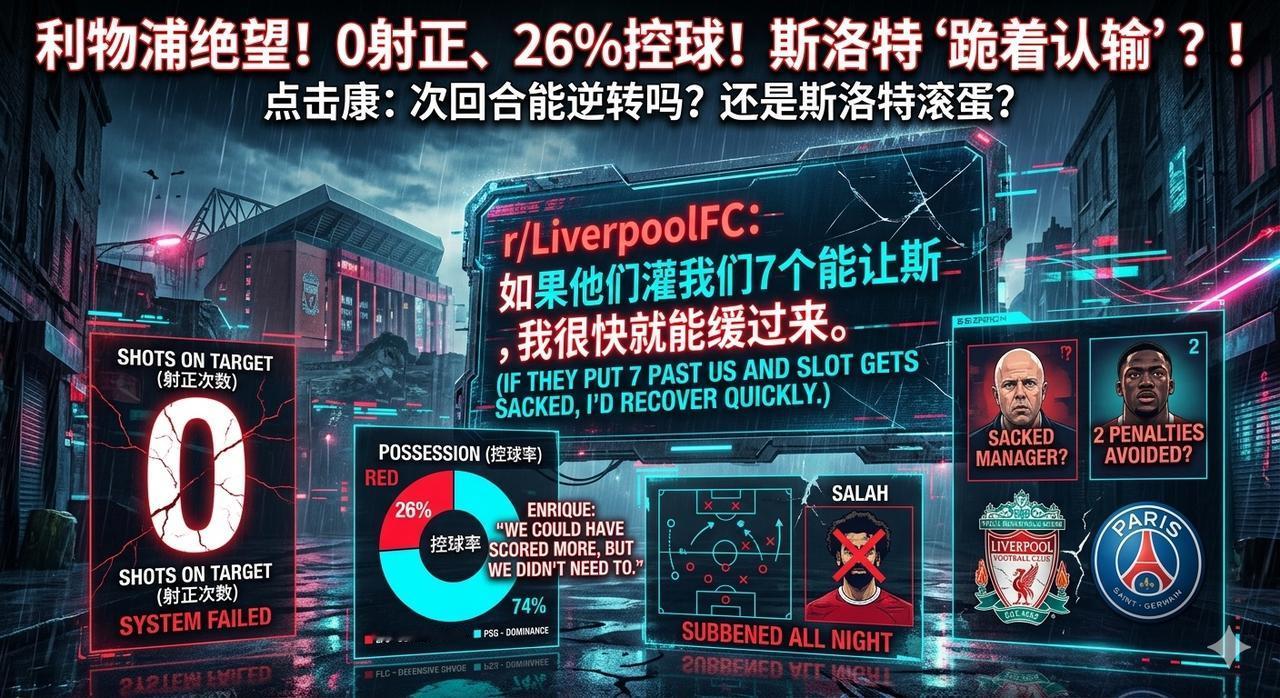 利物浦球迷赛前在Reddit上发了一条热帖,看完我沉默了。帖子不是“怎么赢巴黎”,不是“战术怎么排”,而是——“如果他们灌我们7个能让斯洛特滚蛋,我很快就能缓过来。”