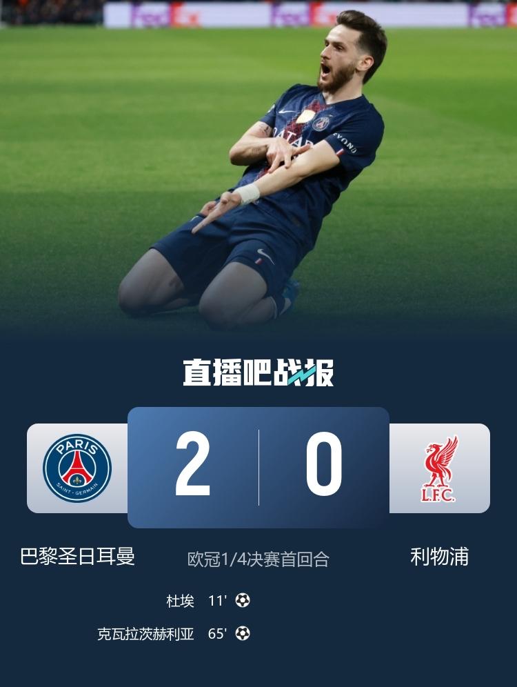 因为去年的账还没算完:同样是王子公园,巴黎控球率71%,射门27比2,利物浦全靠阿利松9次神扑才只输0比1。一年过去了,阿利松不在了,换成了马马尔达什维利。结果呢?11分钟就被杜埃闪击破门。