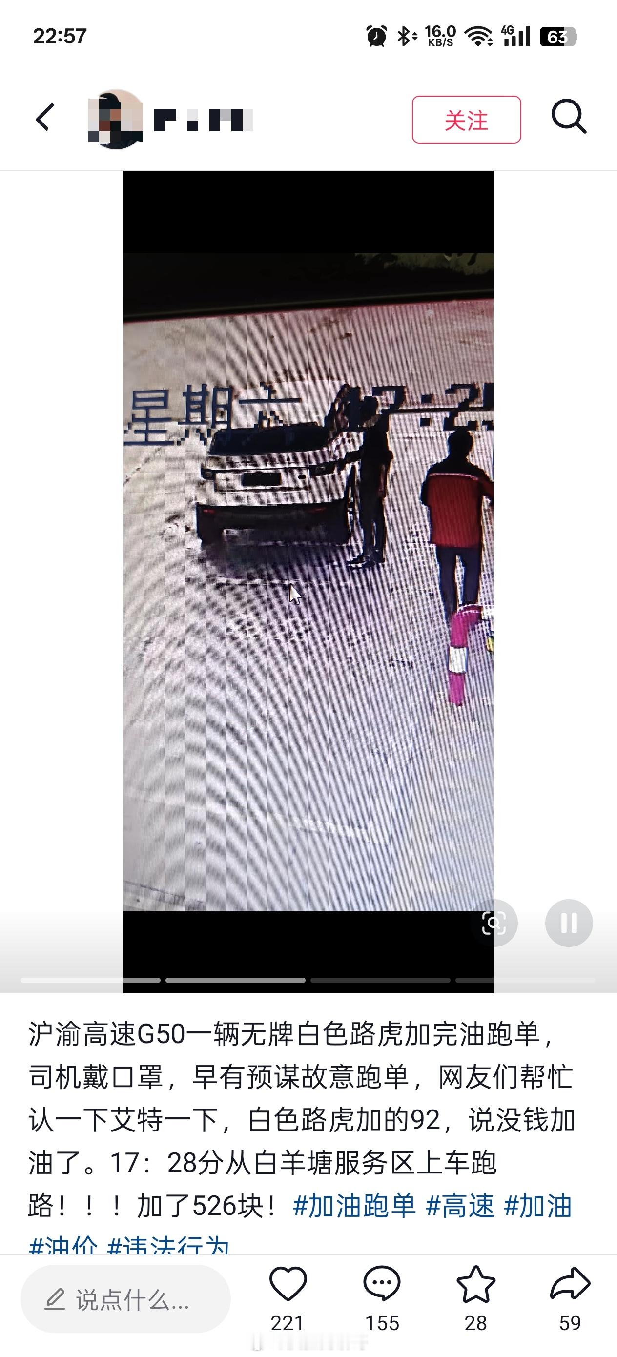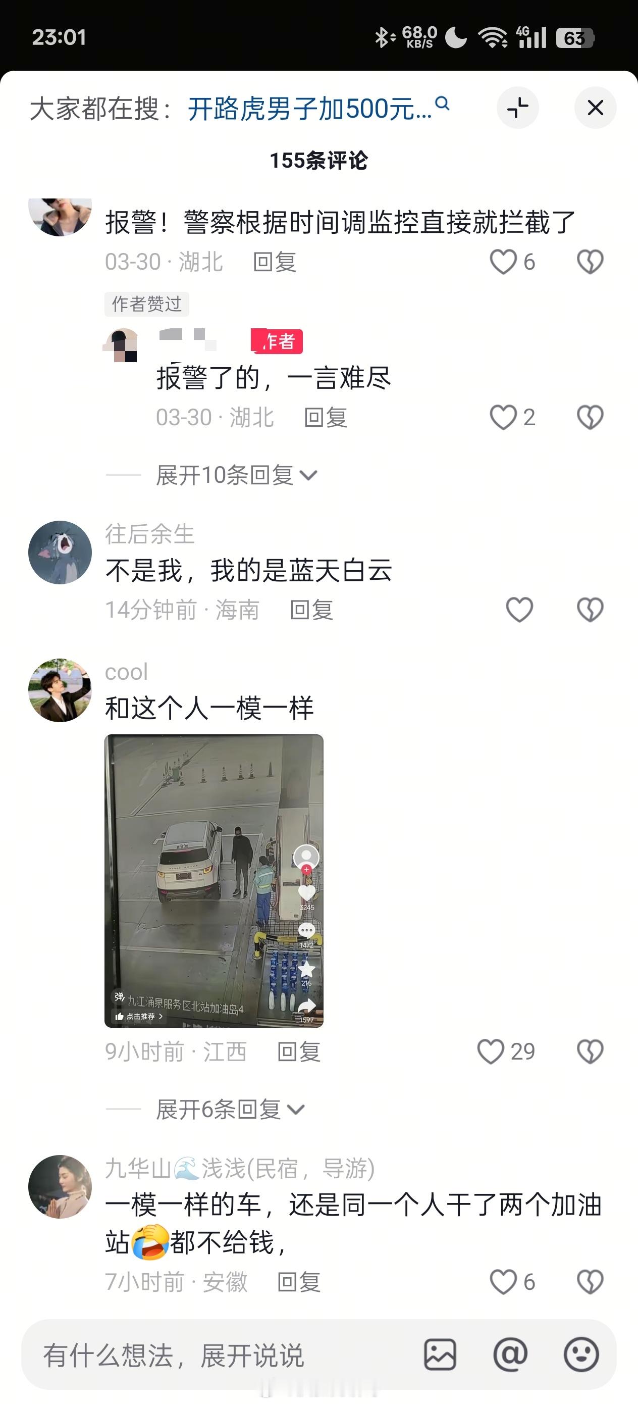 男子开路虎加油500元后逃单 据说这个白色路虎车主是一个惯犯,看鞋子应该是同一个人(图5),3月28日在湖北也逃单一次(如下图),这两天又在九江逃单......大v聊车
