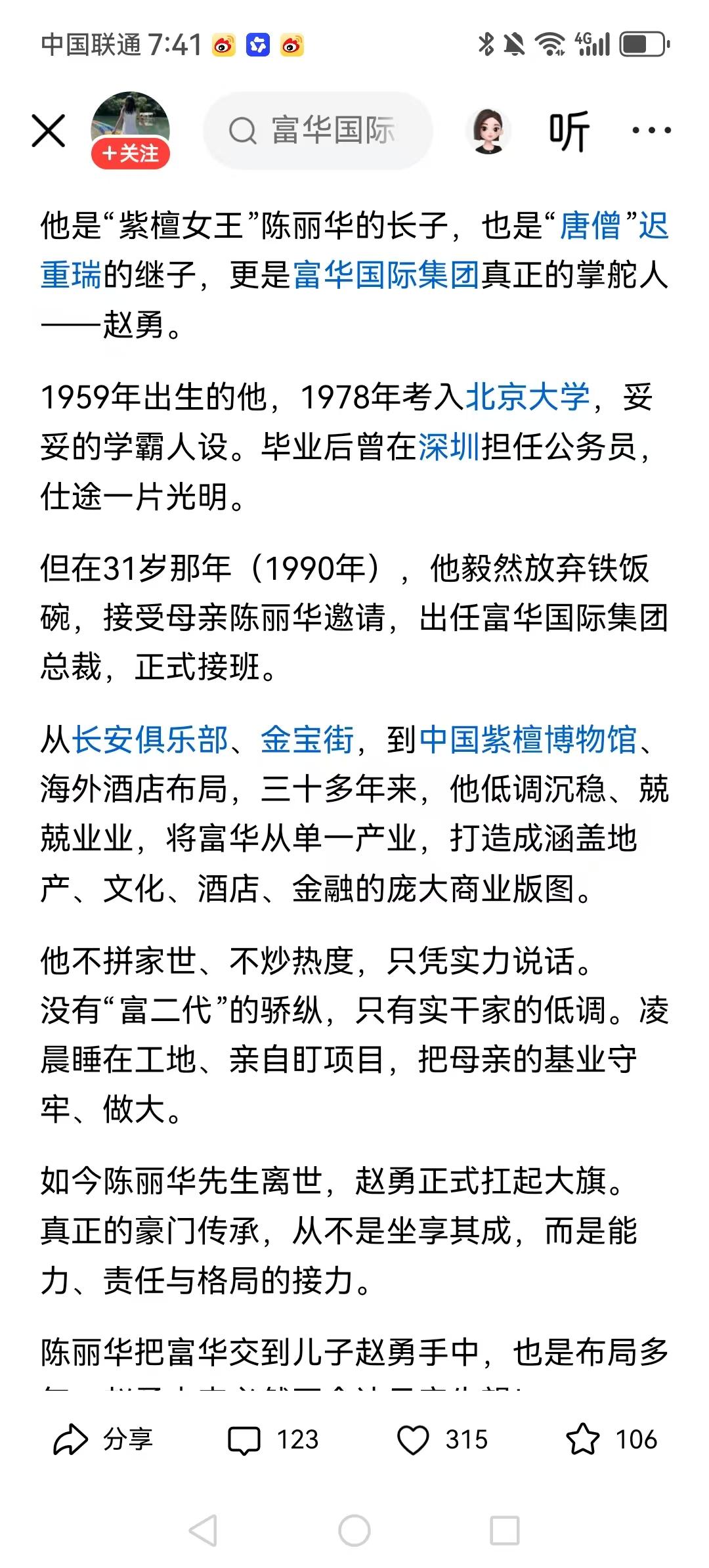 他是陈丽华长子赵勇,北大的学识,公务员的厚重,资产的加持,这人生舞台与空间,真是人间绝唱!