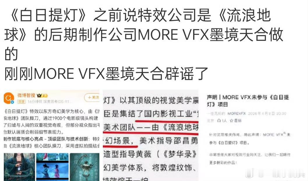 流浪地球特效团队辟谣《白日提灯》是他们的项目。