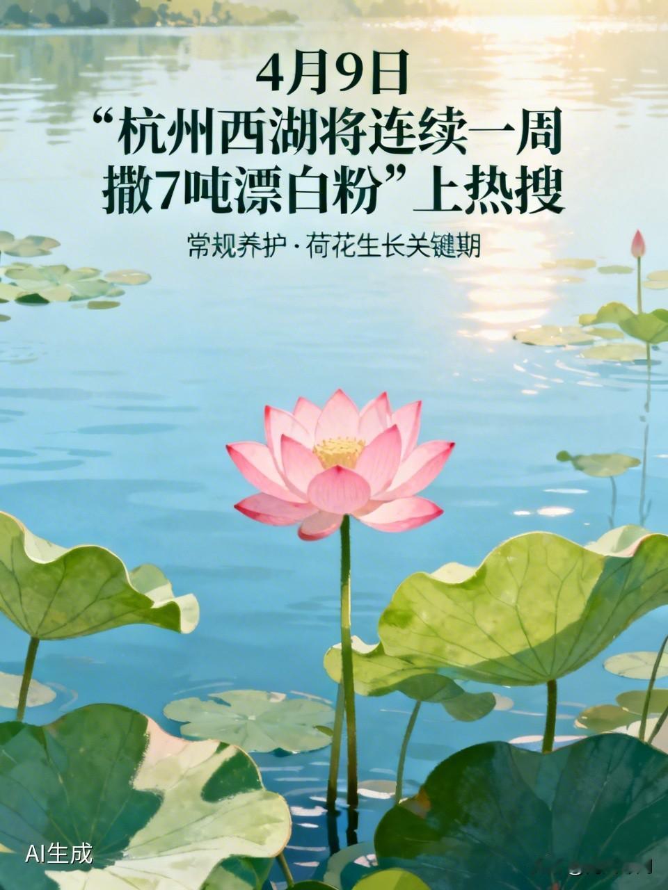 4月9日“杭州西湖将连续一周撒7吨漂白粉”上热搜,大家都挺关注。其实西湖水域管理处回应了,这是延续近30年的常规养护。每年4月是荷花生长关键期,荷区面临病虫害、藻类疯长、鱼啃荷芽等问题,所以得清塘。
