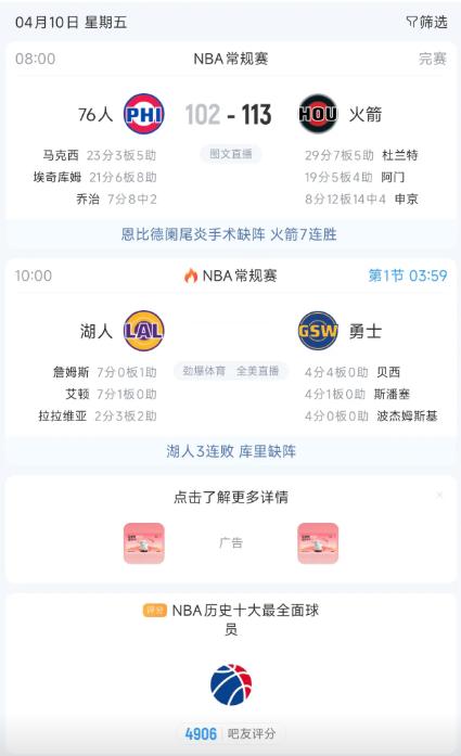 火箭排名暂时反超湖人 火箭8连胜强势反超湖人,从第5冲到第4。湖人东契奇、里夫斯接连受伤,詹姆斯缺阵,三连败跌出前四。常规赛收官阶段,每一场都决定排位,火箭冲前四、湖人保席位,这波卡位战太有看点,季后赛首轮可能直接碰面。