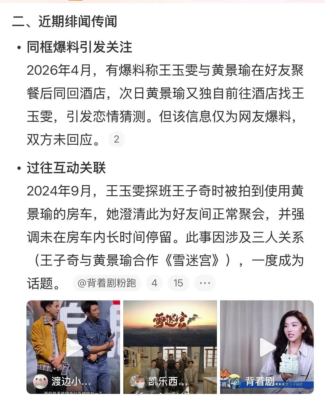 曝黄景瑜王玉雯恋情