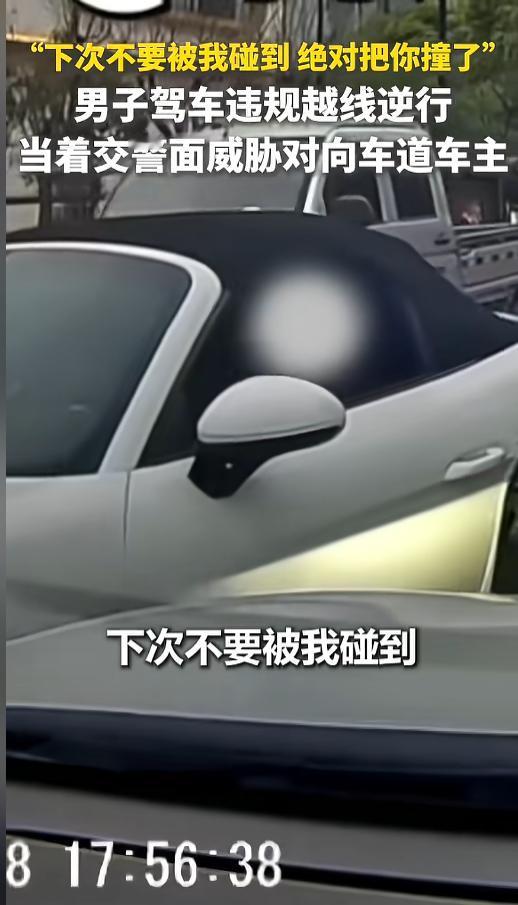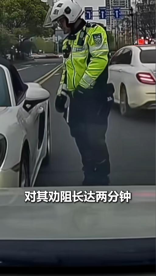 随后,交警又对保时捷车主,进行了长达两分钟的劝导,但其依旧油盐不进,态度十分的嚣张。驾车离开时,在经过该车主旁边时,还当着交警的面威胁,“下次不要被我碰到,绝对把你撞了!”。