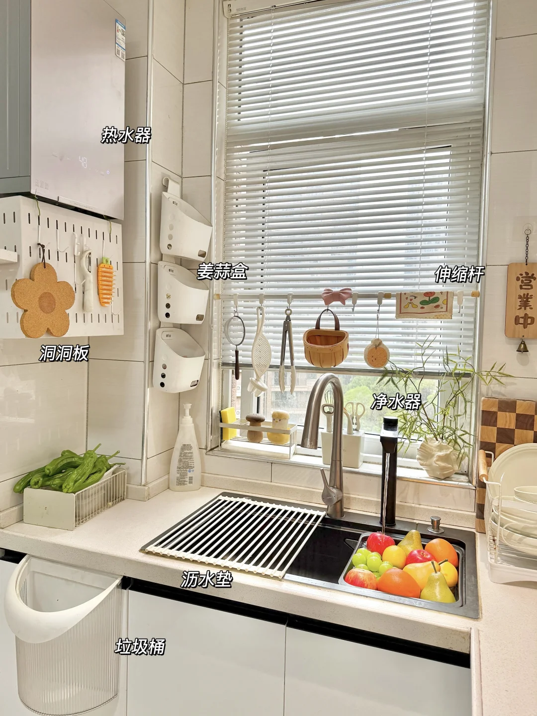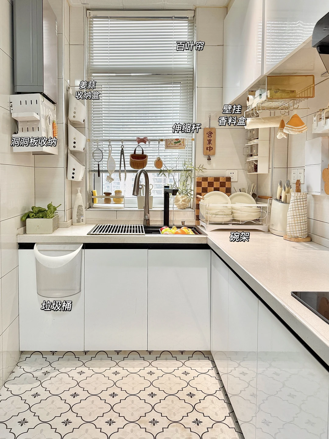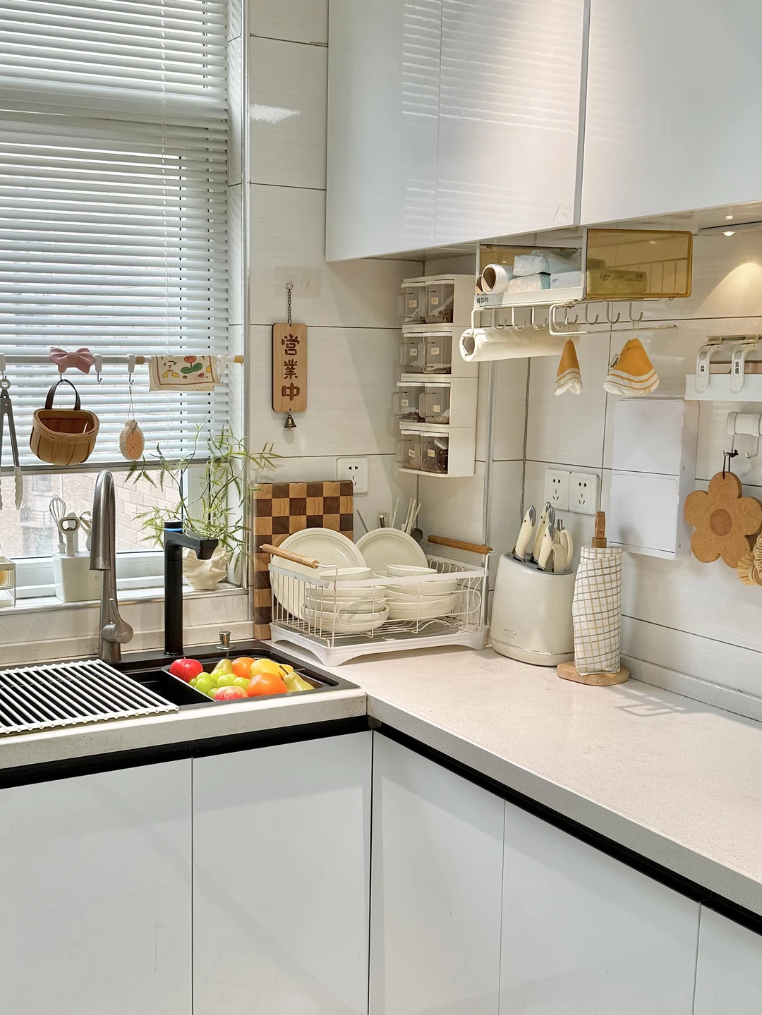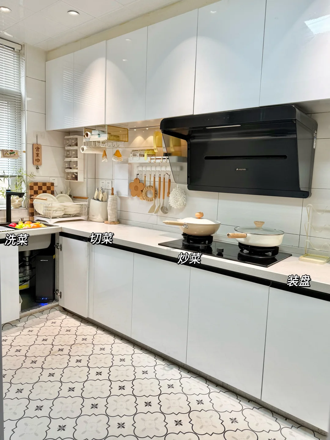 要说这个家最让我满意的角落,就是这5㎡小厨房。虽然面积不大,但被我收纳得井井有条,按照洗、切、炒、装的动线设计,能上墙的都上墙,台面干干净净,用起来超顺手!