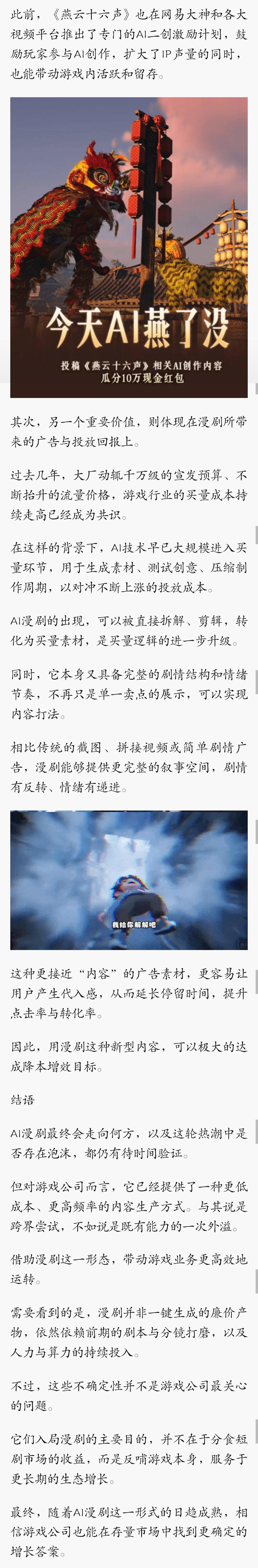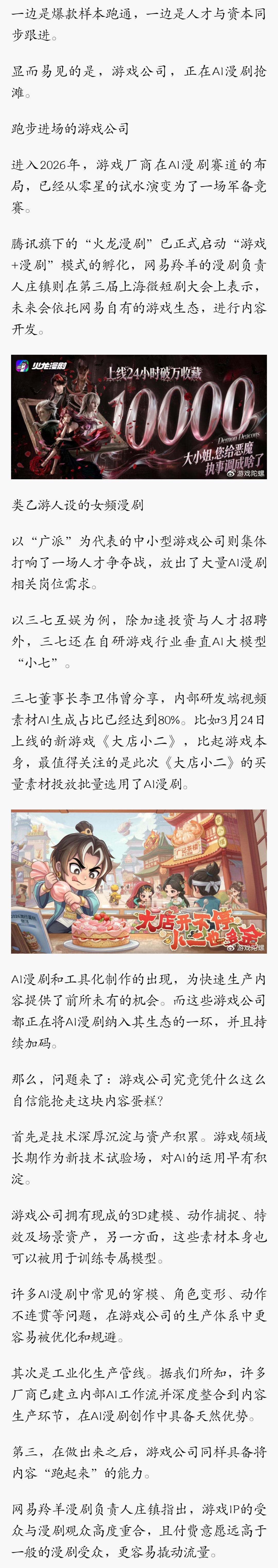 但今天不同了,由于有了AI工具,因为有很多人在使用AI工具在做各种各样的短剧,因此,游戏行业第一次有机会触及这个由普通玩家构成的长尾市场,用来给自己的游戏进行宣传。