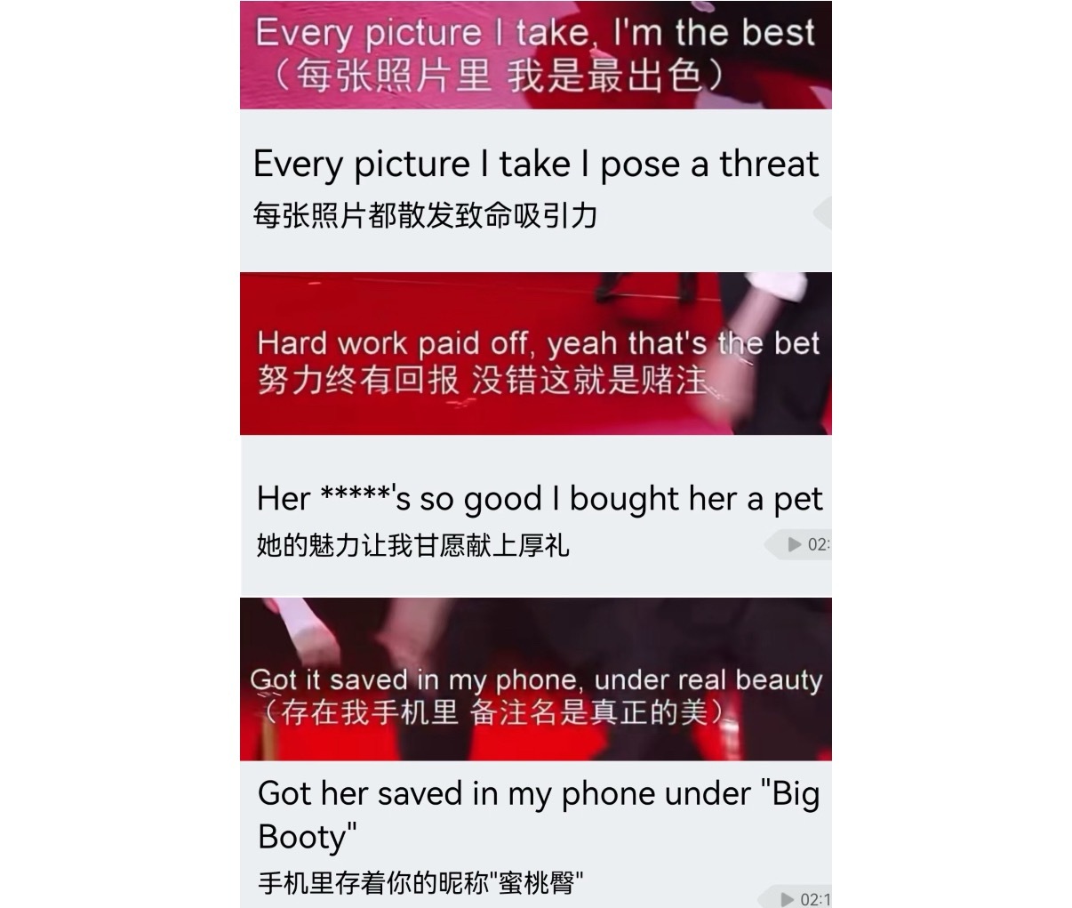 孩子solo的词也改的特别特别好,完美避开了那些露骨的部分,改之后的词很符合新皓舞台上不可一世的气质