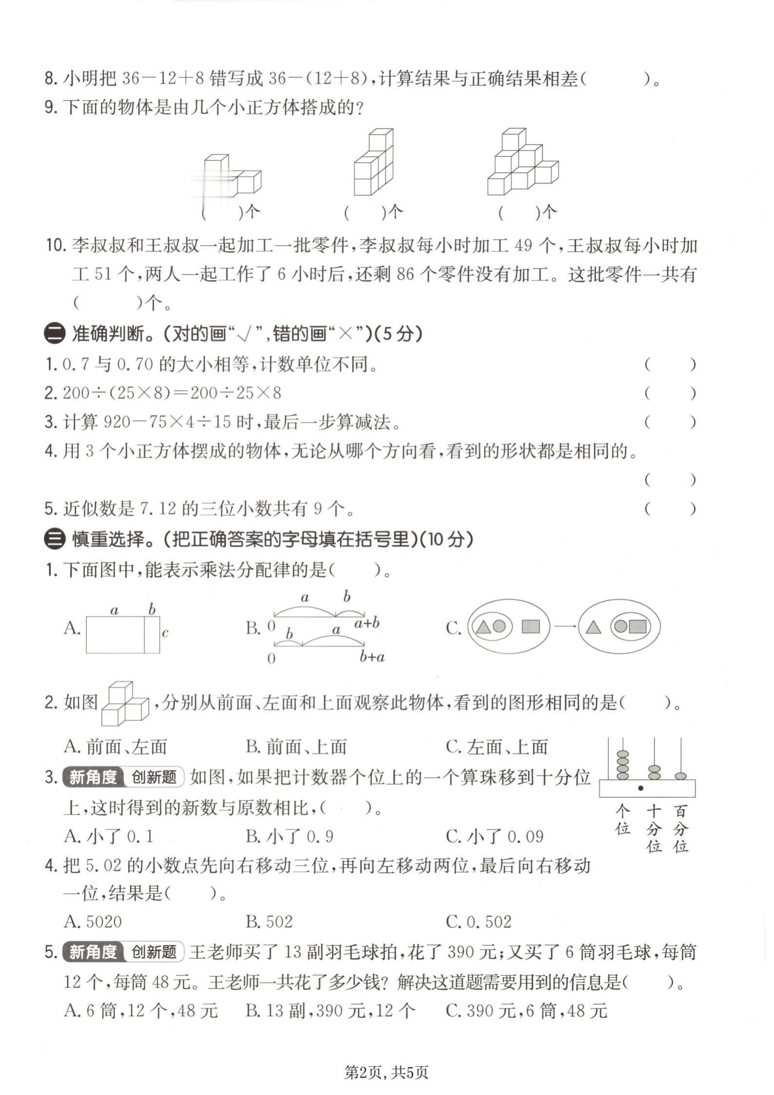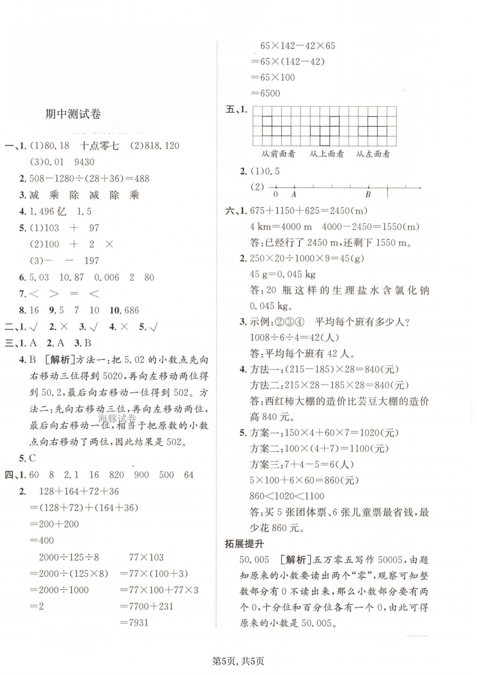 四年级数学《期中检测卷》,重点题型全解析。家人们谁懂啊!😤