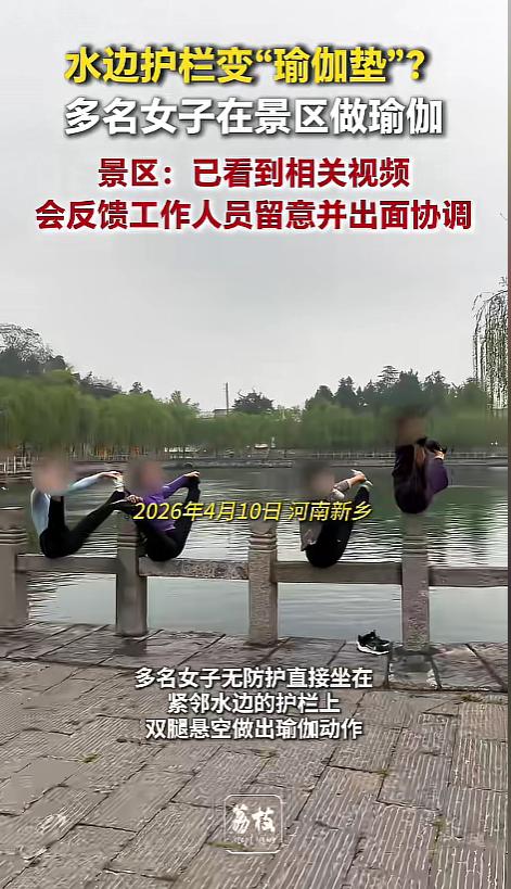 信息来源:《水边护栏变“瑜伽垫”?多名女子在景区做瑜伽 景区:已看到相关视频 反馈工作人员留意并出面协调》荔枝新闻