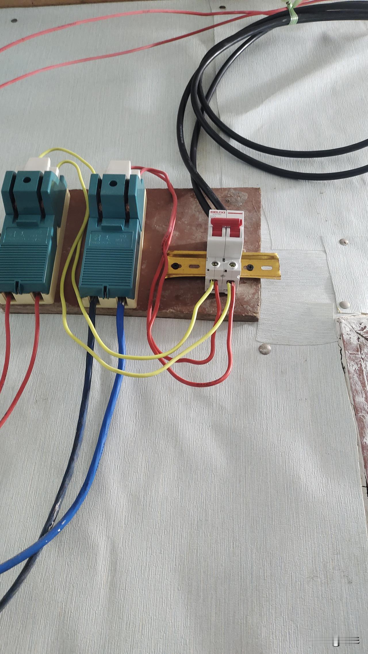 今天早上六点起床,因为没电,我用煤气罐下了半斤挂面和老婆吃了,然后七点半左右,我骑着电车到镇上个人的五金商店,割了八米的粗铝线,又买了一个63安的刀闸开关,总共花了不到五十元钱!回家之后我把胡同里的我家总表拉闸断了电。我带着头灯,先把旧刀闸的两根四米线解下来,再换上新买的两根,重新接上线路,然后合上闸,灯又亮了!