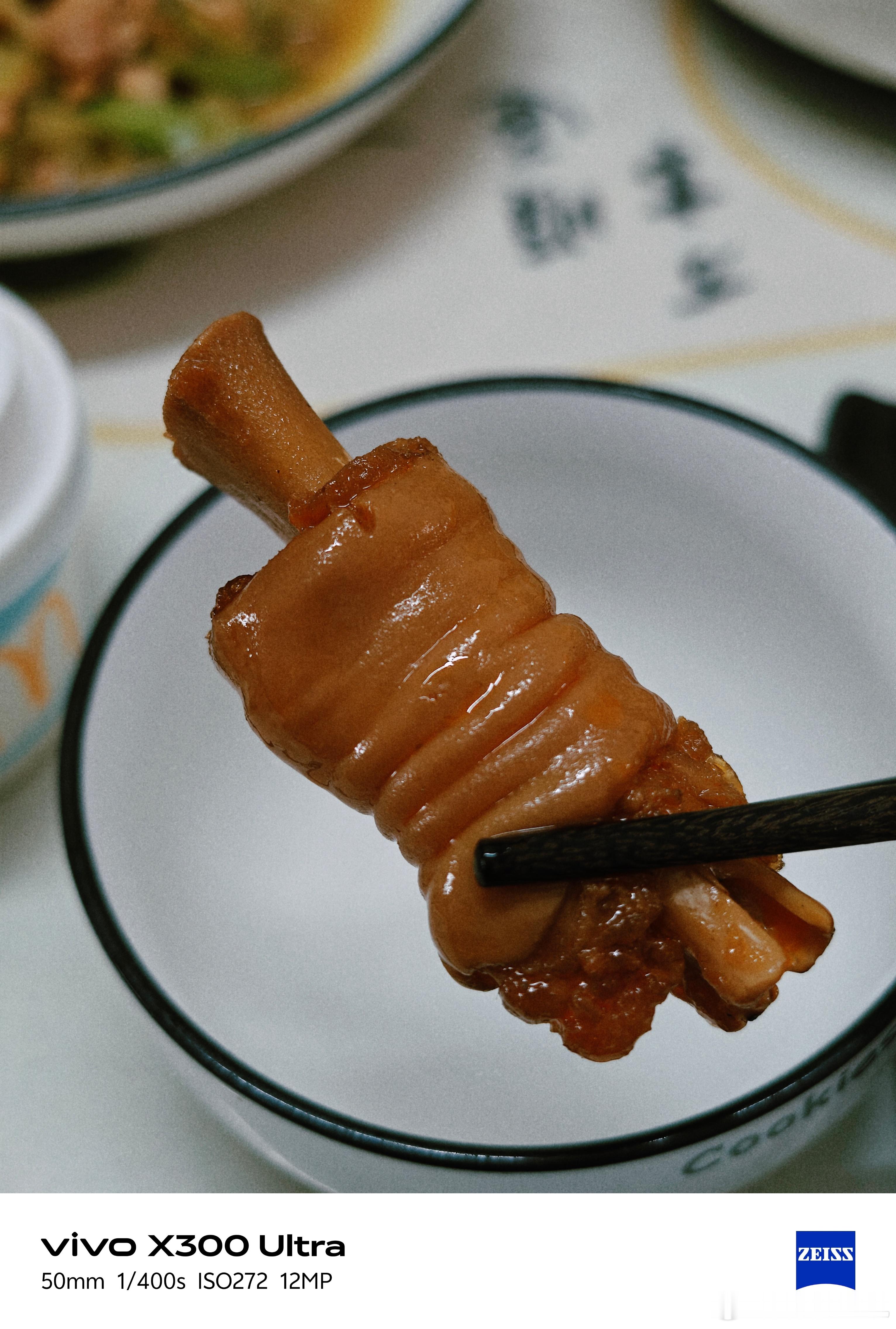 秀山羊蹄一吸就掉有一丢丢辣,味道不错我妈自己做的梅菜扣肉肥肉相间很扎实今天中午吃