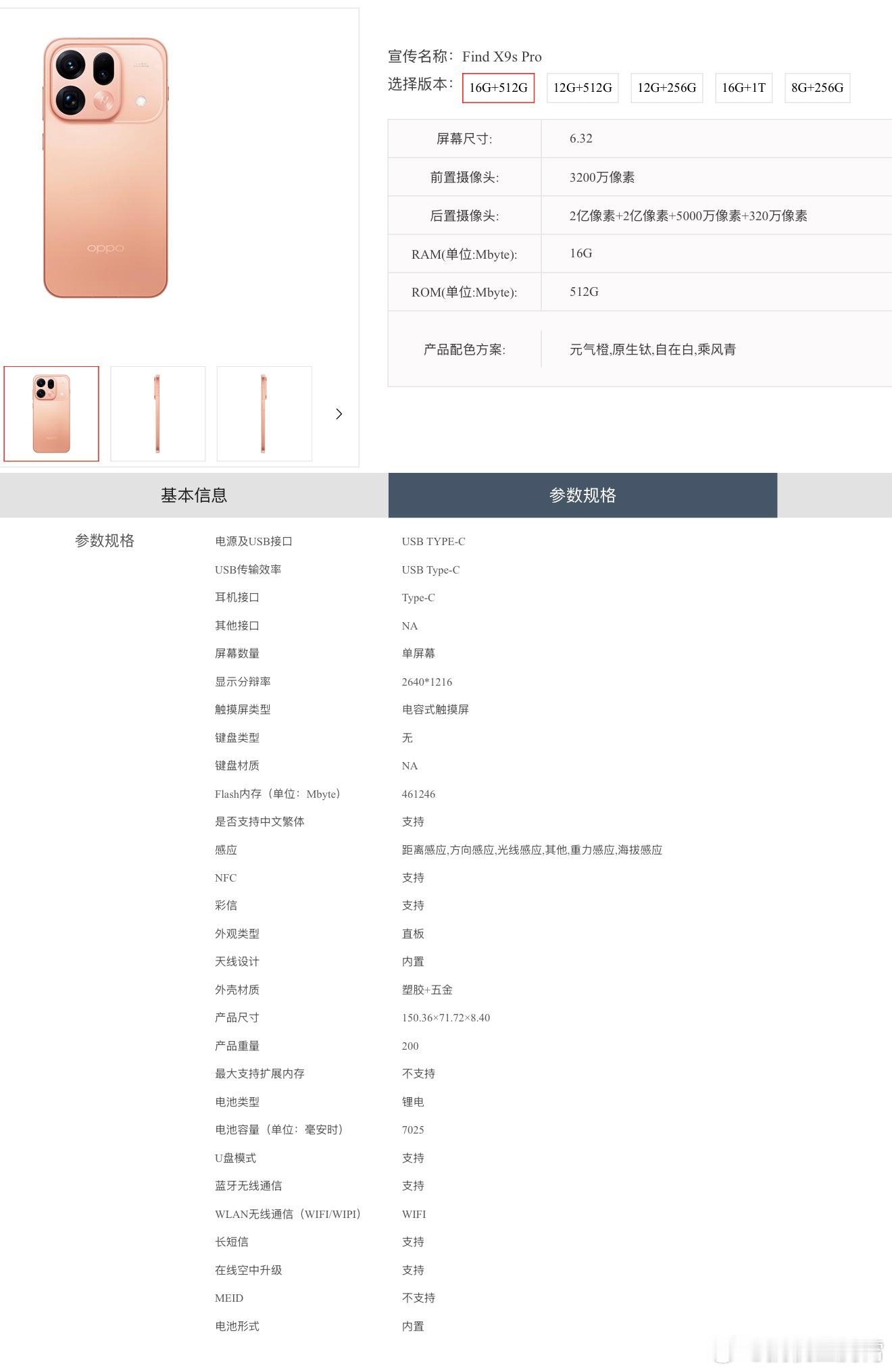 OPPO Find X9s Pro亮相电信终端产品库,配置也基本都曝了。6.32英寸的2640*1216直屏,天玑9500处理器,后置2亿像素主摄 + 2亿像素长焦 + 5000万像素超广角 + 320万丹霞多光谱镜头,内置7025mAh电池,机身厚8.4mm、重200g,玻纤后盖 + 直角金属中框,提供4个配色,依旧小屏尺寸,你们喜欢吗?