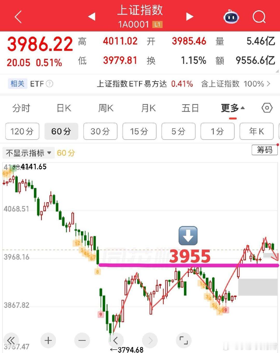 2026.4.12周日(下周策略): 关键点3955,下周怎么看? 周末消息面还是比较多的,一个是美伊谈判,没有谈妥,分歧大,对市场有一定利空;另一个则是发布的关于创业板的改革措施,这个重要性没有那么大,知道一下就好,比较有影响的还是主板风险警示的ST股票,由原来的5%调整为10%。涨跌幅扩大后,个股分化会加剧,对于业绩连续亏损的,无基本面支撑的,风险就会加大,实际上也是为了加速出清绩差股。总体利好绩优股,尤其是业绩稳定增长的个股;利空绩差股,尤其是ST,警示的要小心。 所以短期年报一季报陆陆续续公布,选股的时候还是要注意一下,免的踩雷。比如海泰、柳化、中化都是近期公布业绩后直接ST或警示。 指数方面,大盘周五冲高回落,主要是4000点上方是成交量密集区,压力比较显著,一次性站上难度较大,另一方面由于5日线偏离过大,以及20日线方向向下同样对指数也有压制作用,会有拉回震荡的技术需求。 从结构的角度分析,大盘突破3955后做了个回踩确认,关键点3955,所以回调不破3955就还是正常的波动范围,最简单的,只要保持20日线上方做震荡,就都可以接受的范围。 总结来说,周末谈判没有谈妥,对开盘会有影响,大概率会有低开下探顺势回补周五缺口的动作,关键点看3955,不破还是正常的波动范围,若守不住,则考验4月8号号缺口支撑。均线的思路来看,必须保持20日线上方震荡,下周下半周才有拐头预期。 策略上,短期外围继续干扰,但只要守住关键点和均线之上,回调就可以找机会,更重要的还是节奏,尤其是情绪指标,上周表现的非常有规律,主要也是外盘因素,涨就是4000家以上,跌就是4000家以下,所以,回到冰点区,把握好这种节奏! 个人观点,仅供参考!