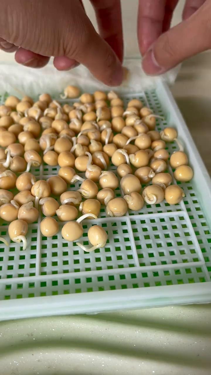 先播报温湿度情况,温度十六点五摄氏度,湿度百分之五十九,温度有所上升。掀开育苗纸,嫩芽肉眼可见变长,表面光滑,有的已经自己往下寻找水源。透过屏幕,你们能感受到生命的力量吗?最后检查下育苗盒的水位,根据实际情况决定是否需要补水。