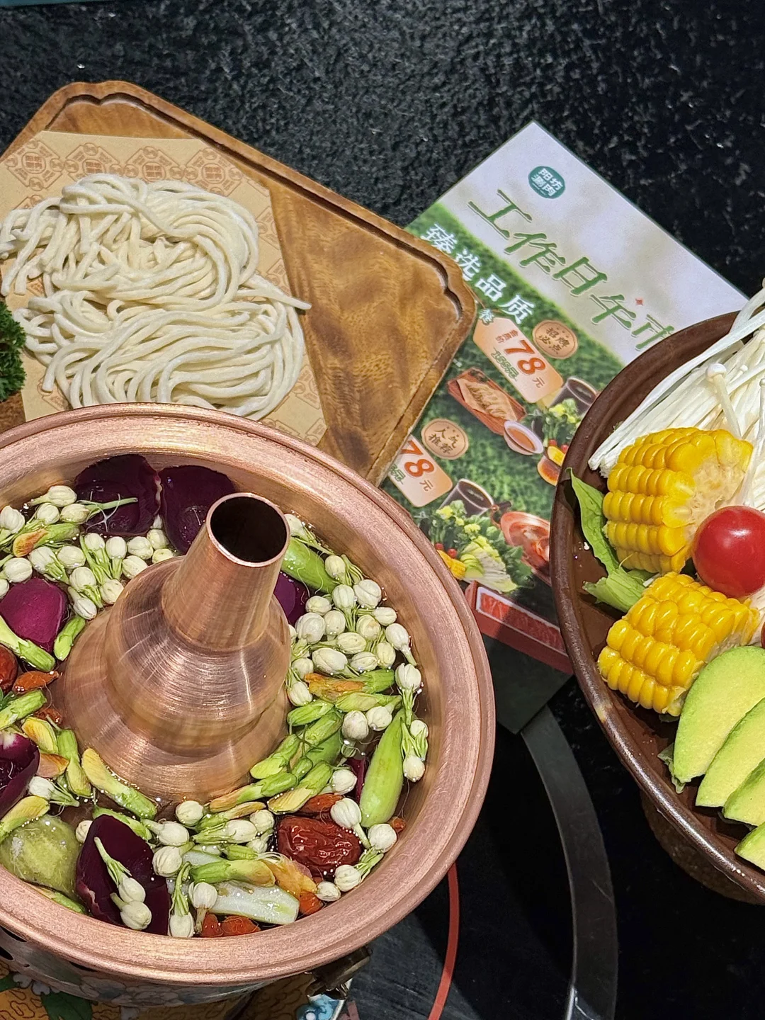 山泉水鲜花单人锅第一次吃,很有春天的味道,闻起来也香香的~