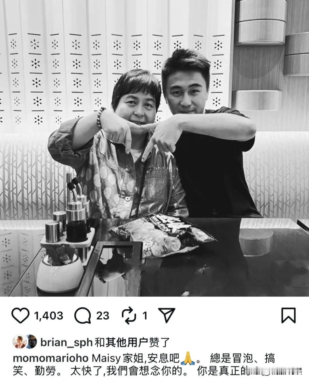 赌王二房何超蕸去世,四房的何猷君,黑白照纪念,并发文: