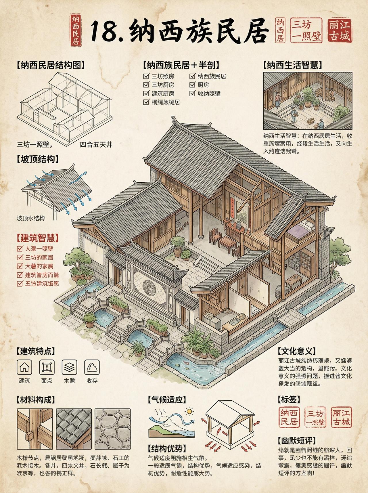 🏠 纳西族民居,是三坊一照壁的丽江风骨,木构灵动,藏着纳西族的东巴文化与生活智慧;