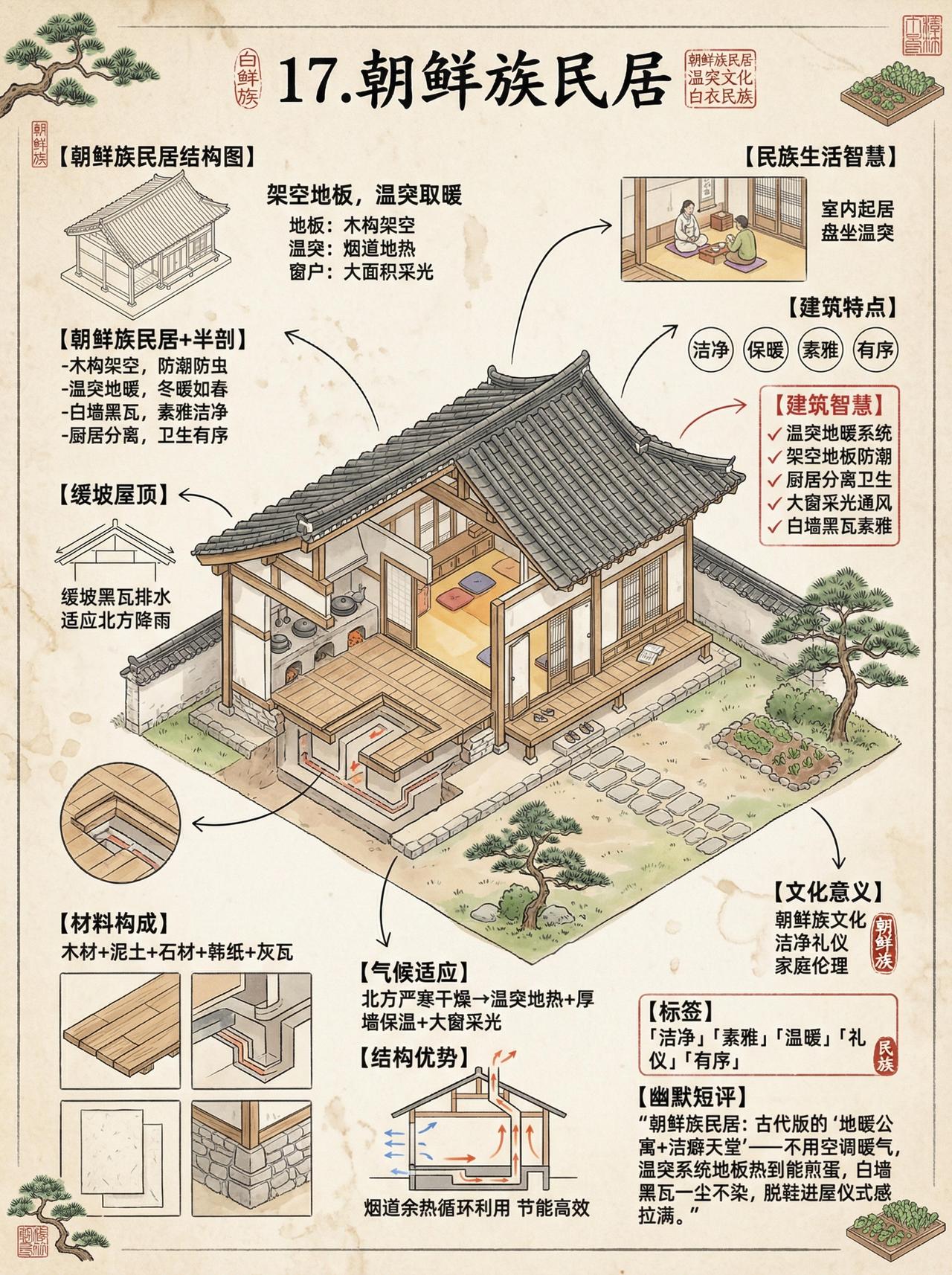 🏠 朝鲜族民居,是温突地暖的洁净雅致,架空地板,把北方的寒冬变成了四季如春;